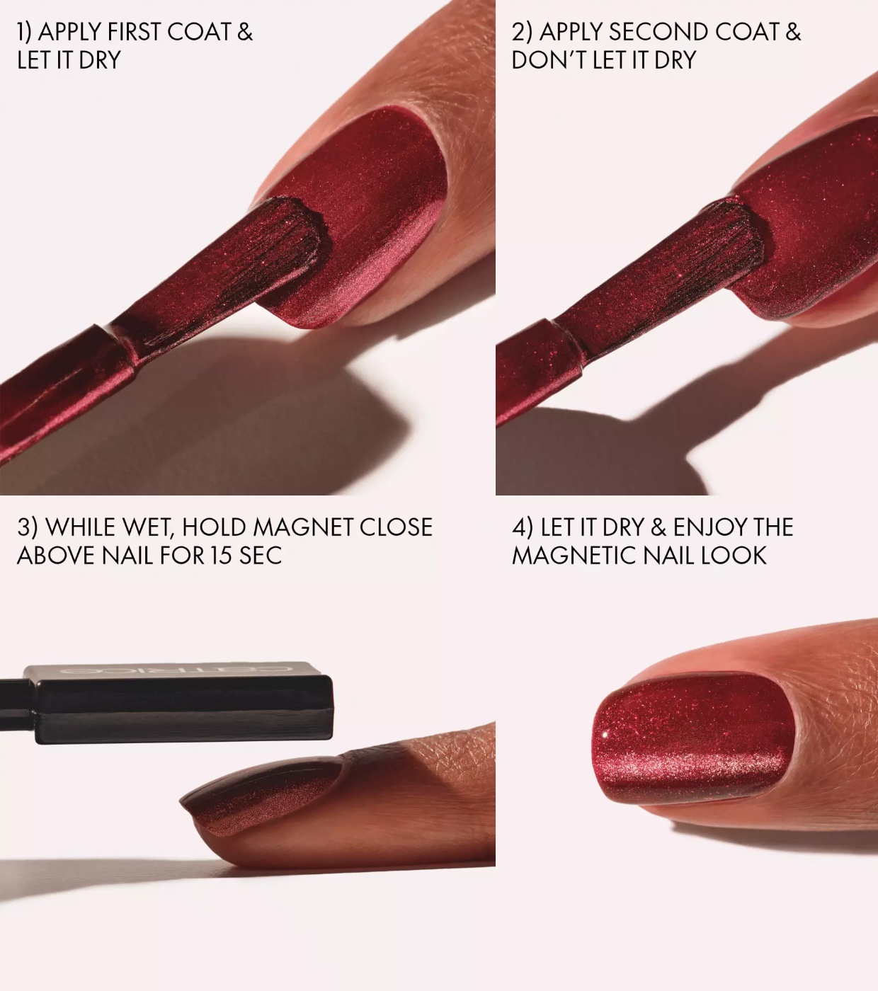Ce vernis bronze métallique spectaculaire aux pigments magnétiques scintillants vous permet de créer des effets 3D comme des ongles œil de chat, velours ou verre à la maison, pour une manucure d'aspect professionnel.