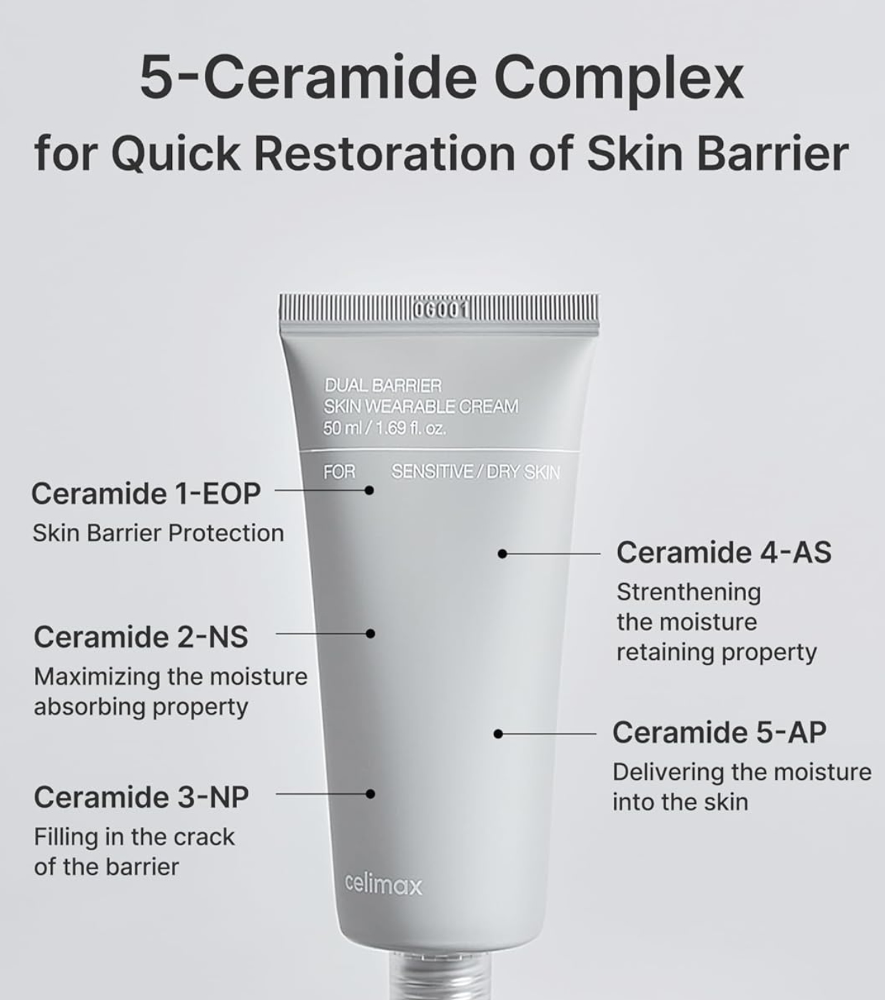 Water, Glycerin, Caprylic/Capric Triglyceride, Butylene Glycol, Propanediol, Stearic Acid, Cetearyl Alcohol, Methyl Trimethicone, Caprylyl Methicone, 1,2-Hexanediol, C12-16, Alcohols, Panthenol, Olea Europaea (Olive) Fruit Oil, Dipropylene Glycol, Allantoin, Pantolactone, Malt Extract, Ceramide EOP, Ceramide NS, Ceramide NP, Ceramide AS, Ceramide AP, Sodium Hyaluronate, Heptasodium Hexacarboxymethyl Dipeptide-12, Phytosphingosine, Arachidic Acid, Oleic Acid, Palmitic Acid, Glyceryl Stearate, Hydrogenated Lecithin, Xanthan Gum, Carbomer, Glucose, Cetearyl Glucoside, Ethylhexylglycerin, Cholesterol, Tocopherol, Tromethamine, Disodium EDTA.
