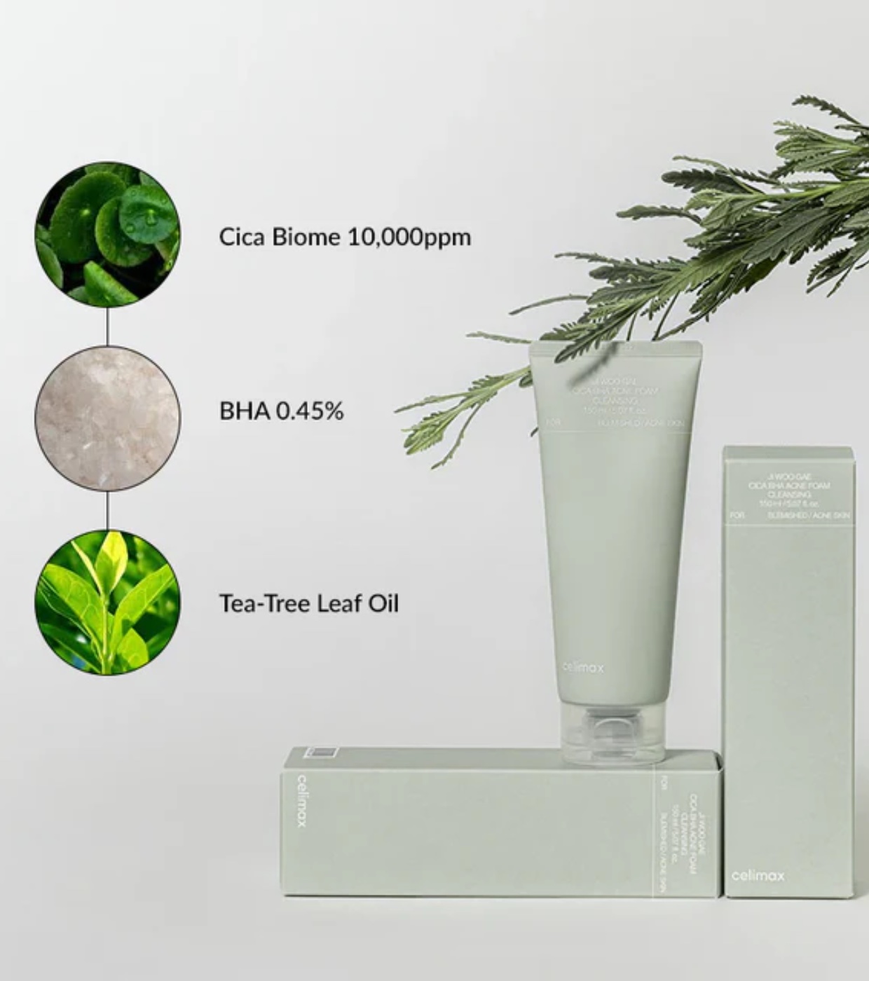 Le nettoyant moussant anti-acné Celimax Ji Woo Gae Cica BHA est une mousse nettoyante douce mais efficace, spécialement conçue pour les peaux grasses, mixtes ou à tendance acnéique.