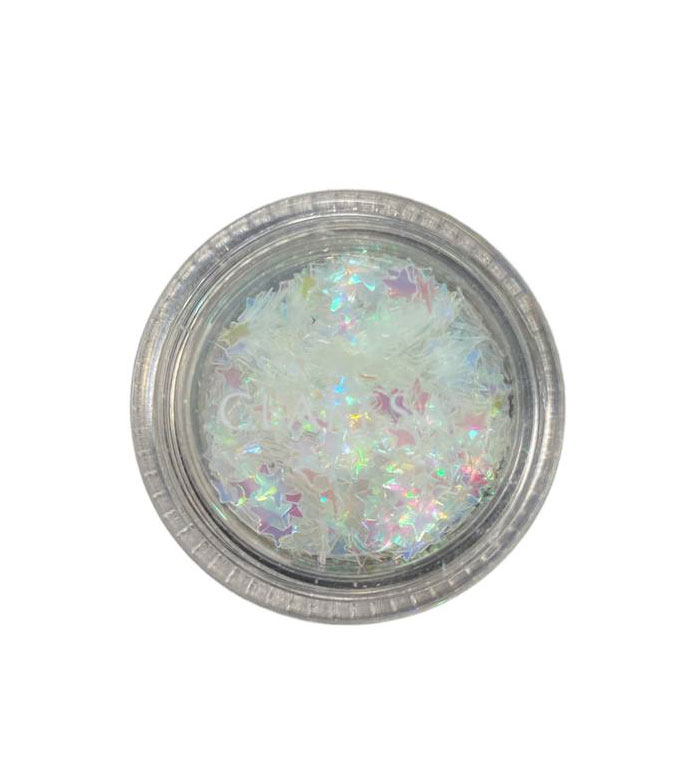 La décoration pour ongles Shining Sky 1 de Claresa est composée de particules irisées pour créer un ciel étoilé dans notre manucure.
