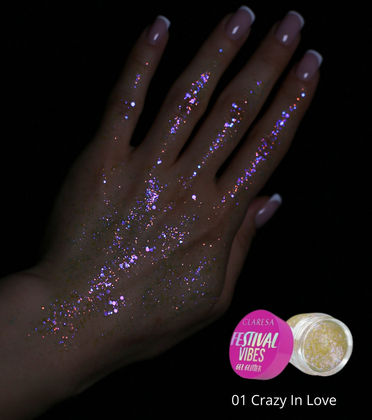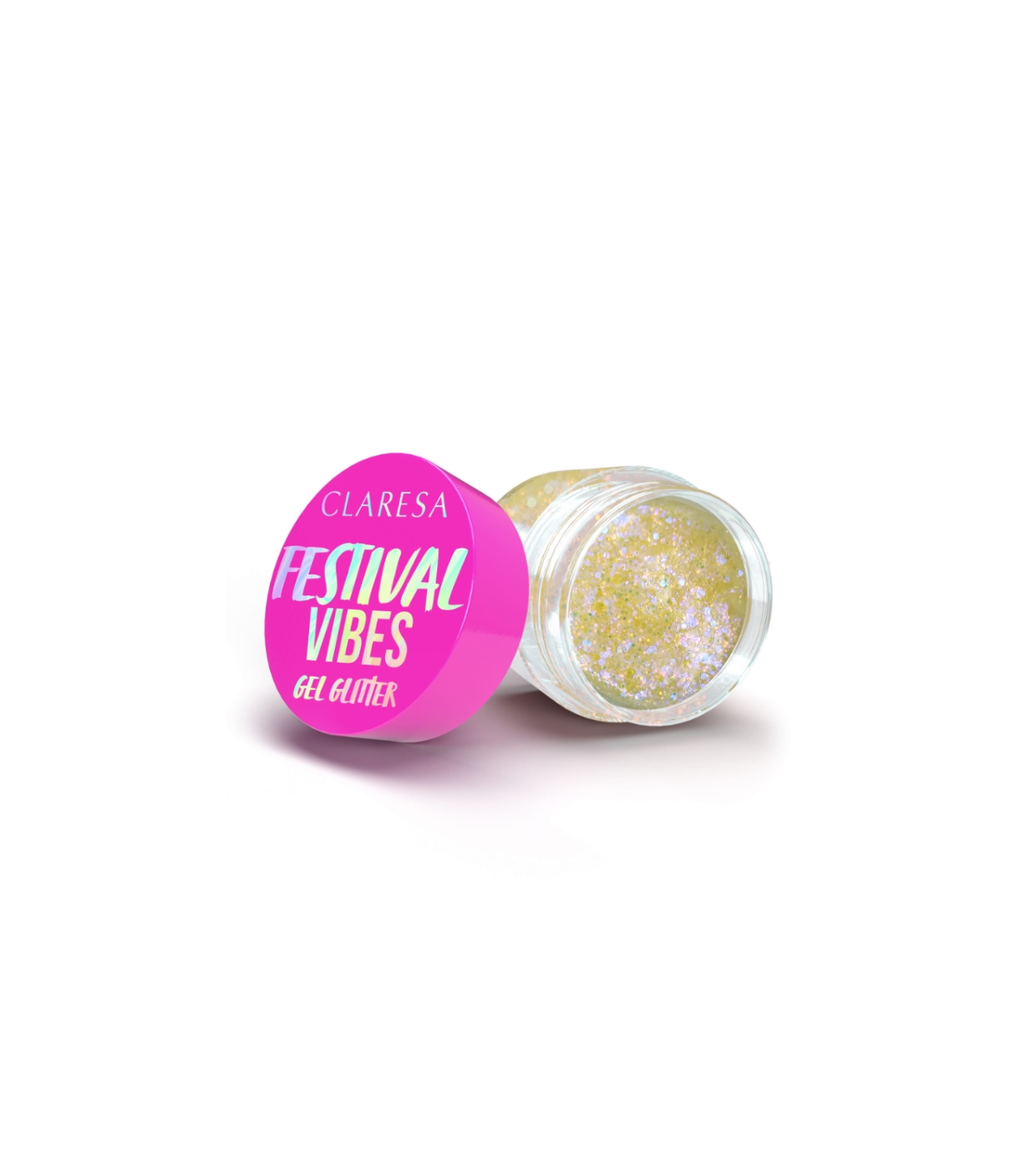 Ressentez l'ambiance du festival sur votre peau avec Festival Vibes Festival Vibes Glitter Gel , le gel pailleté qui transforme n'importe quel look en une explosion de lumière et de couleur.