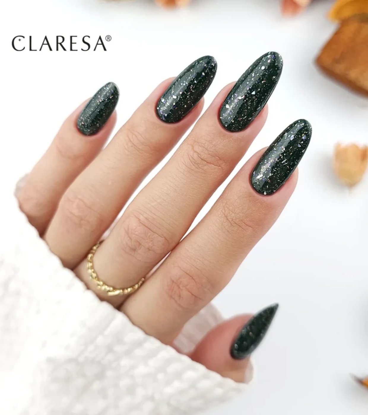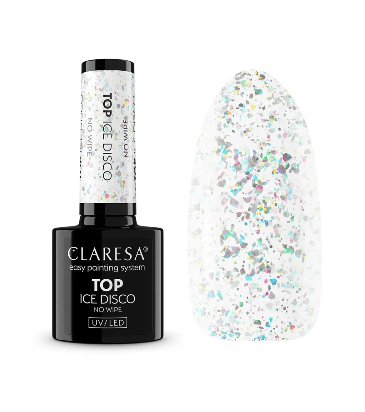 Donnez une touche d'élégance à n'importe quelle manucure en quelques secondes grâce à ce vernis de finition transparent de Claresa avec des paillettes argentées.