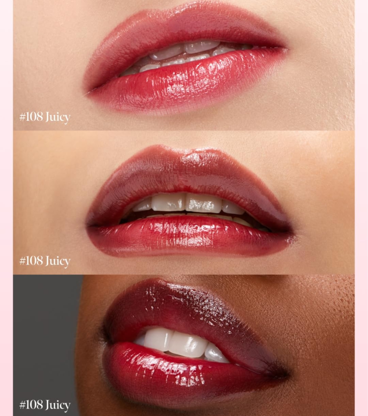 Sa texture gel dense enveloppe les lèvres d'une brillance uniforme et élégante, semblable à la finition d'un vernis gel, pour un look sophistiqué et moderne.