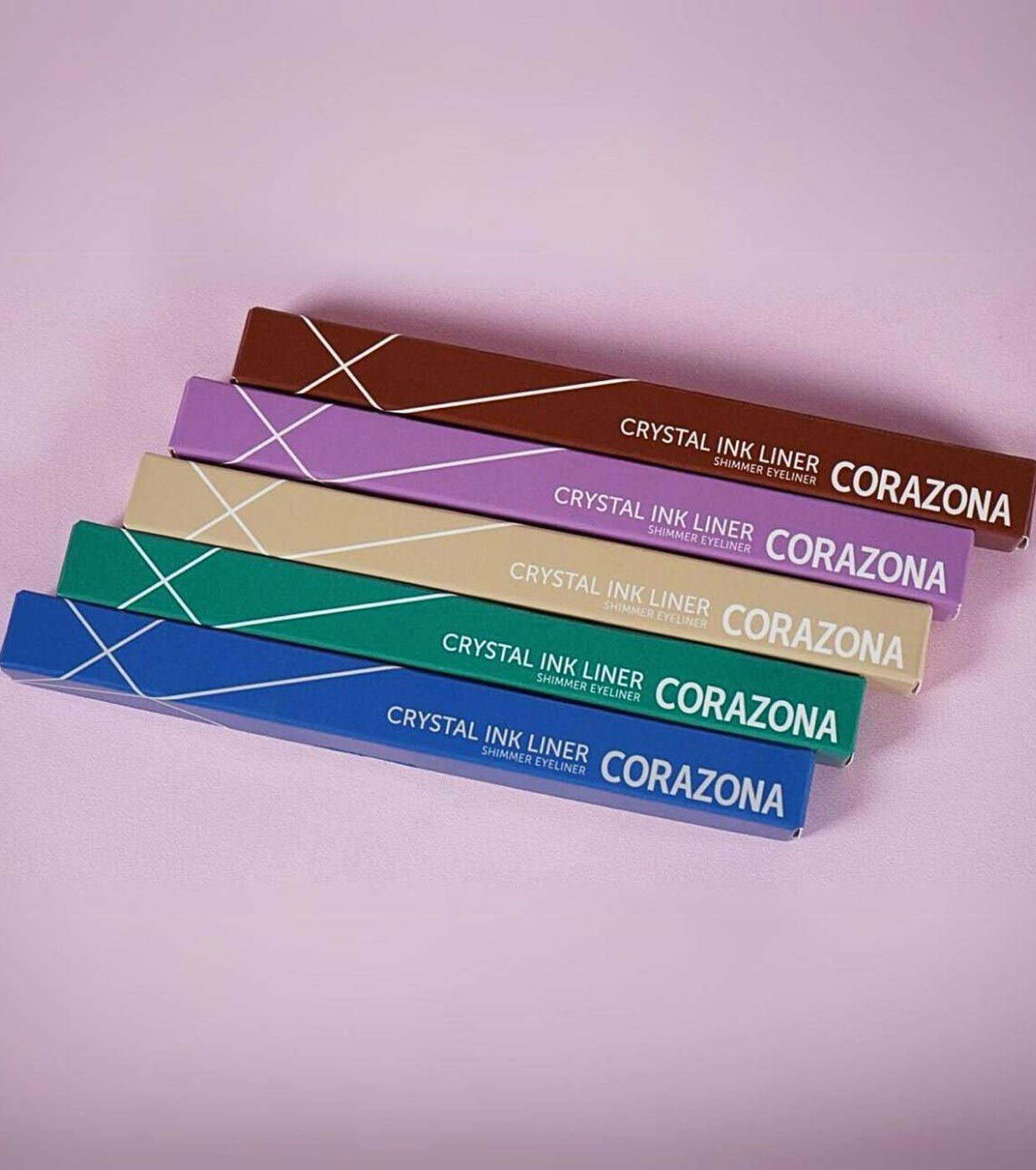 Nous vous présentons CRYSTAL INK LINER de CORAZONA , les eye-liners colorés aux reflets chatoyants qui révolutionneront le look de vos yeux.