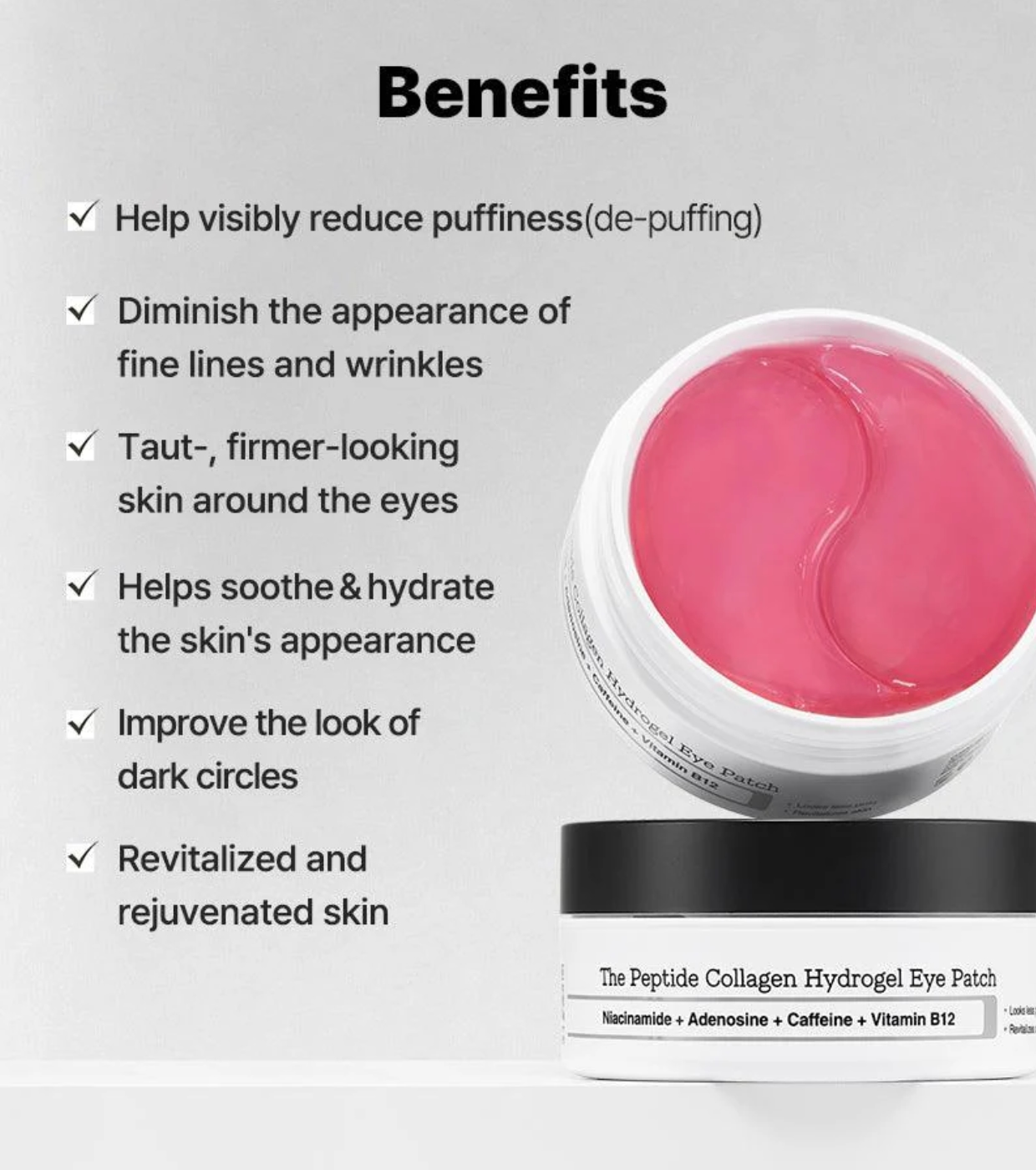 - Réduction des poches : Ces patchs aident à réduire les poches et les cernes, laissant le contour des yeux visiblement plus reposé et rajeuni.