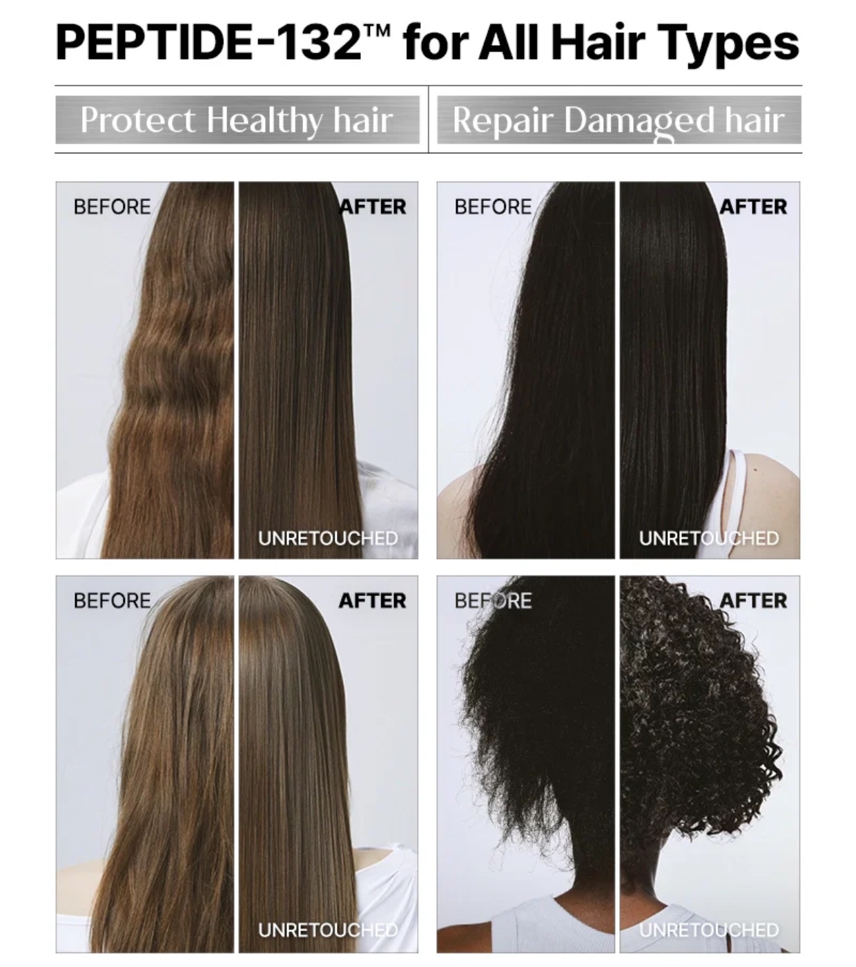 Enrichi en peptide breveté PEPTIDE-132™, il comble les zones clairsemées et retient l'hydratation et les nutriments. Idéal pour les cheveux épais et ternes qui ont besoin d'une brillance douce et éclatante de santé, des racines aux pointes.