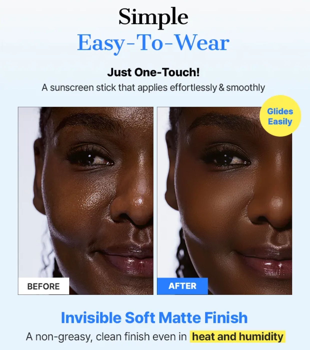 Son fini doux et mat, invisible, sans résidus blancs ni sensation collante, permet une application et une réapplication faciles tout au long de la journée, même par-dessus le maquillage, grâce à son format portable et pratique.