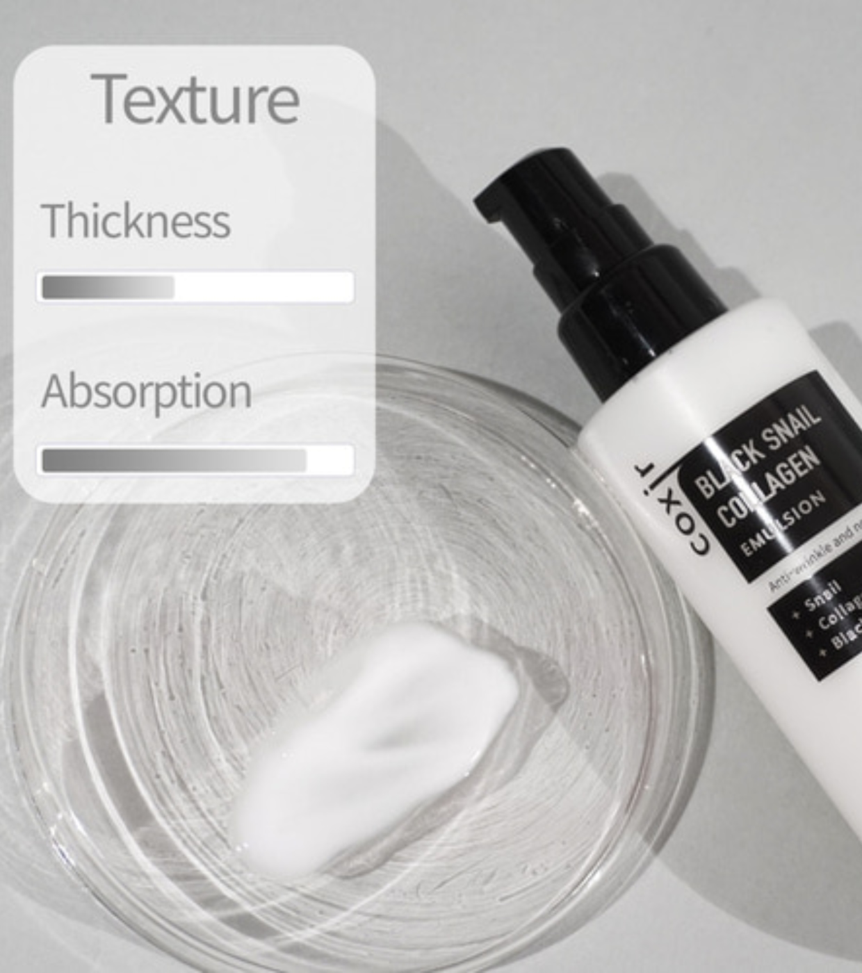 Cette émulsion hydratante Black Snail Collagen de COXIR allie l'intensité hydratante d'une crème à la légèreté d'un sérum, offrant un soin complet pour tous les types de peau.