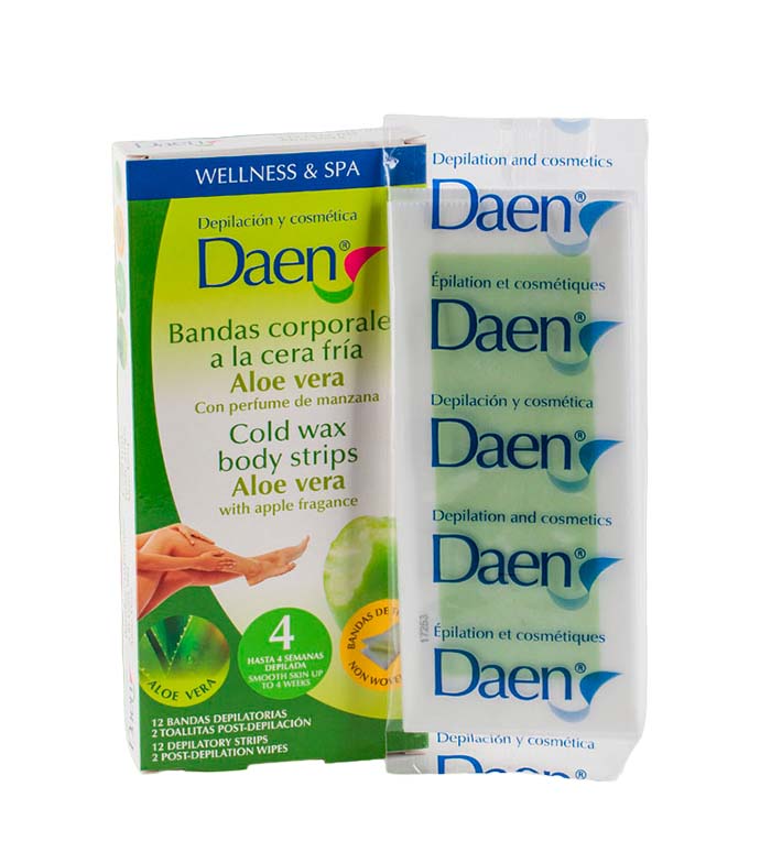 Bandes de cire froide. Avantages : Régénère, réparations, nourrit, il est parfumé et durée jusqu'à 4 semaines pour les résultats.  Caractéristiques : Des ingrédients naturels, contient 12 bandes, 2 lingettes post-épilation.