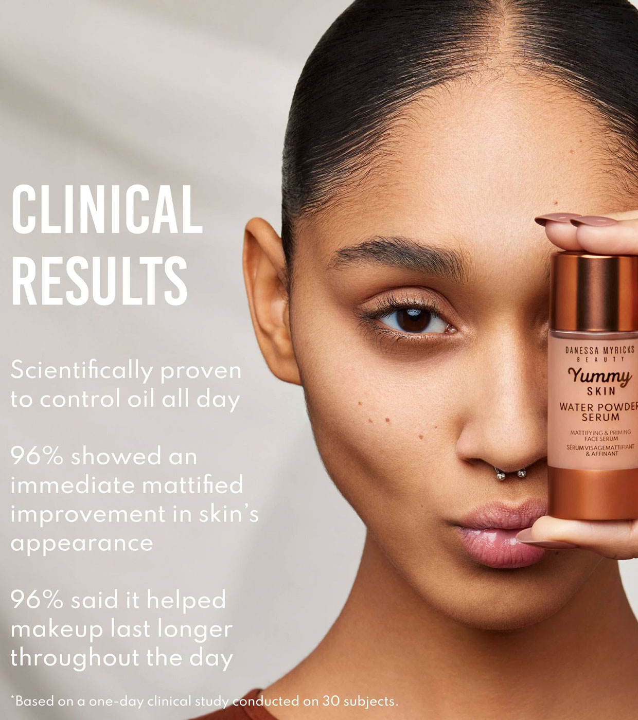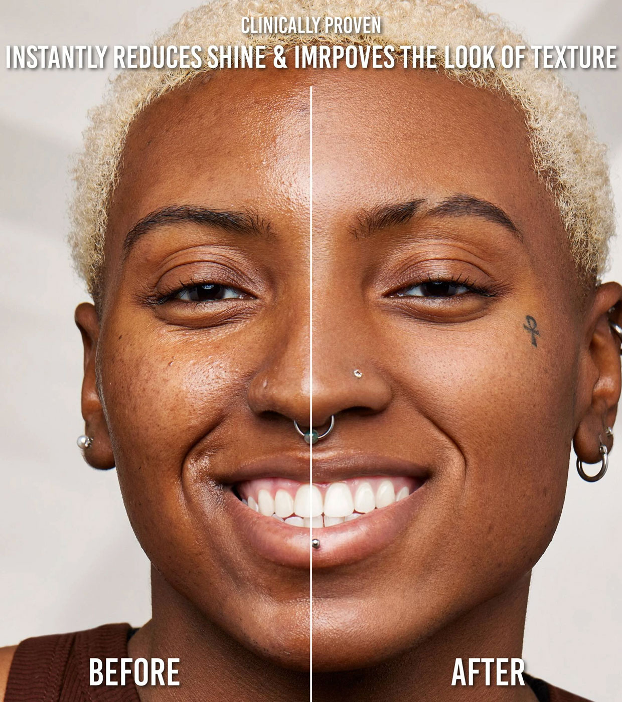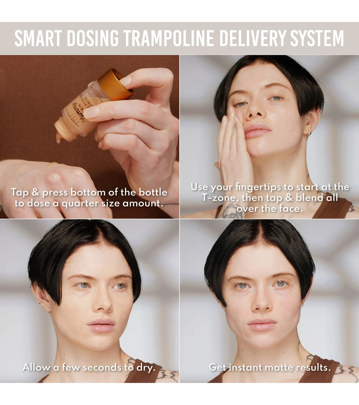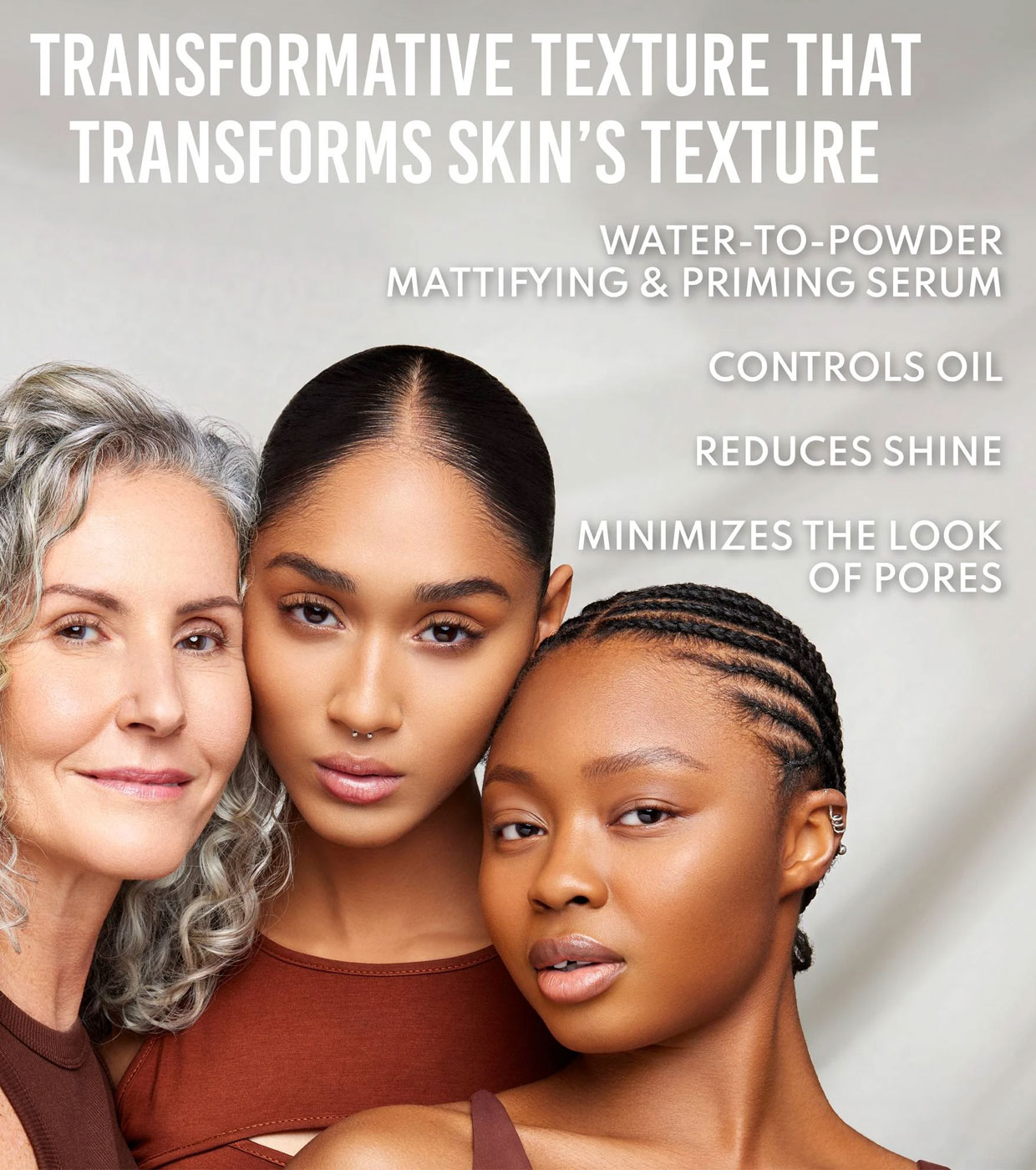 Sa texture légère passe d'une sensation aqueuse à un fini mat poudré, réduisant instantanément la brillance et équilibrant l'huile tout au long de la journée.