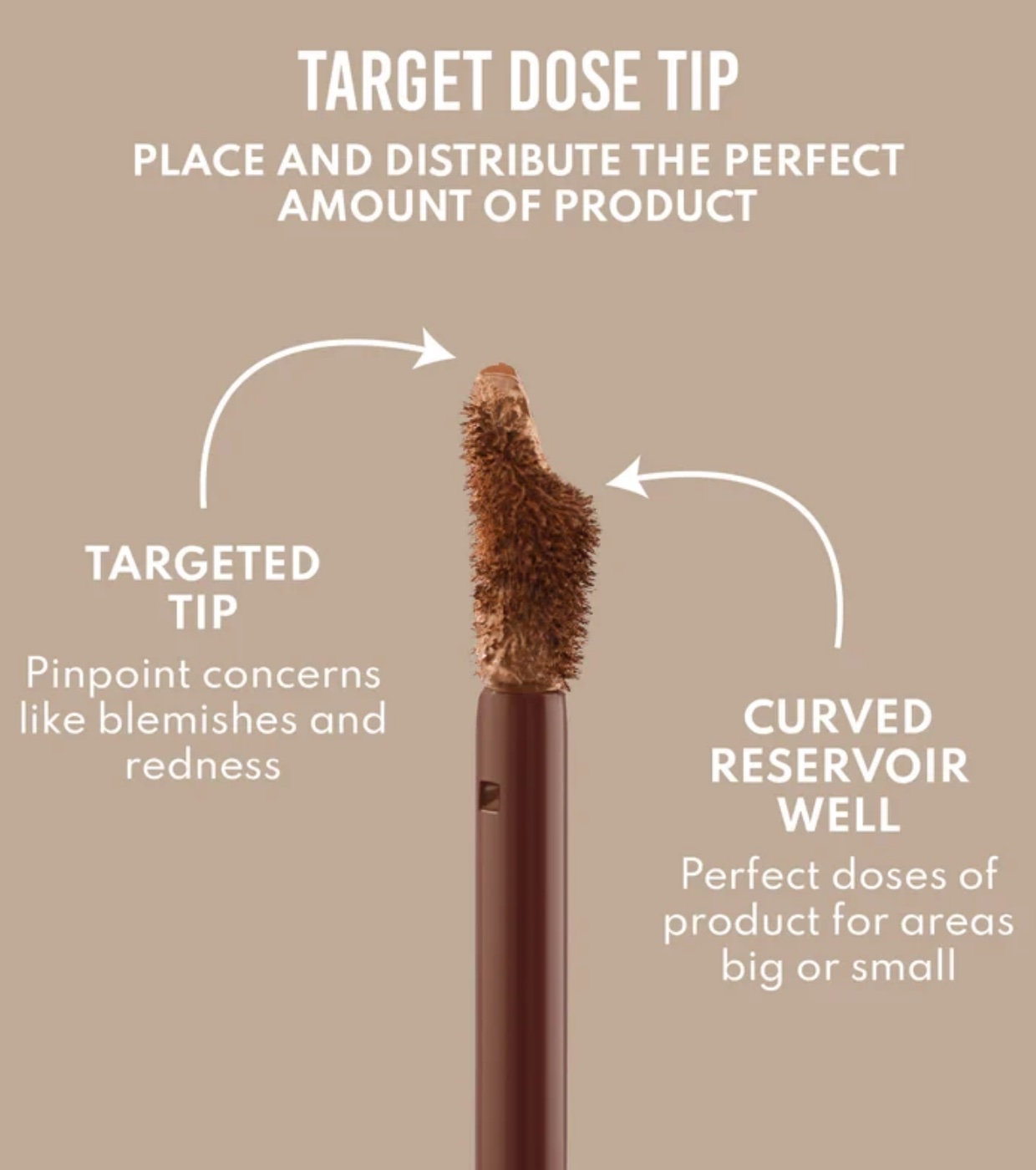 L'applicateur à embout doseur unique est conçu pour appliquer et répartir la quantité parfaite de produit, que ce soit sous les yeux ou sur des zones plus ou moins grandes du visage.
