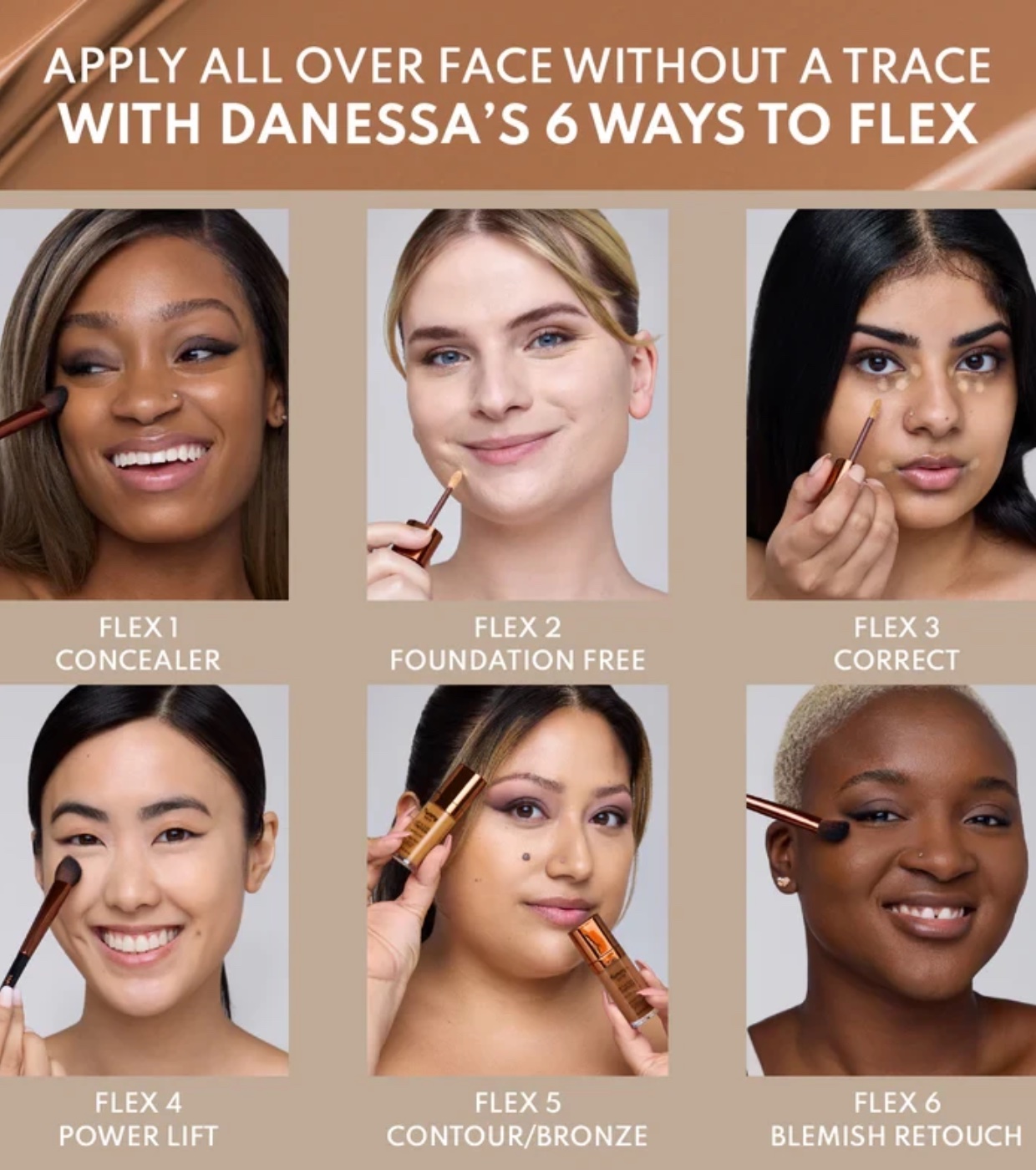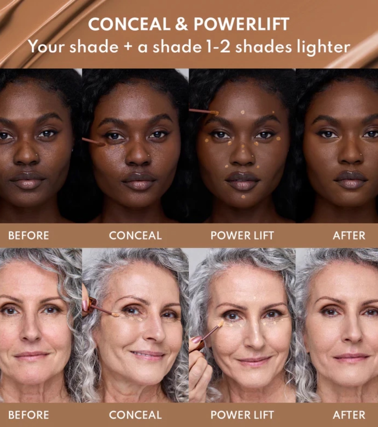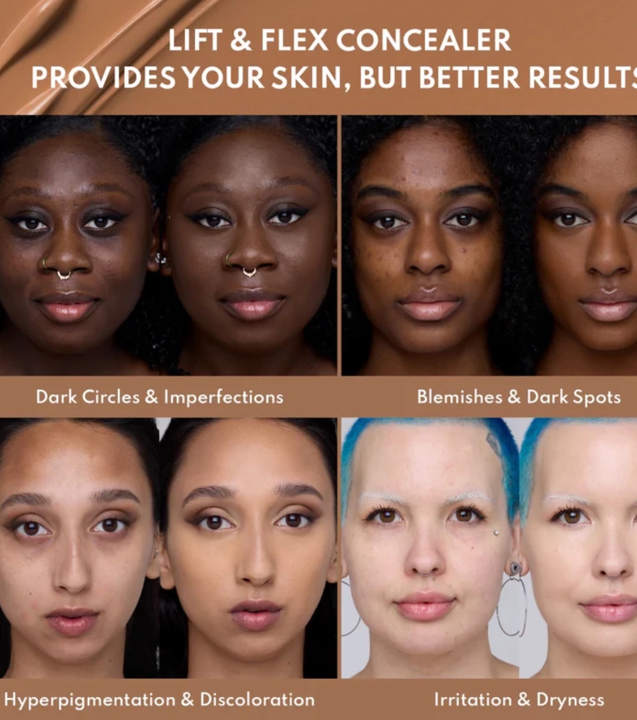 La gamme de nuances de Lift and Flex Concealer est flexible et s'adapte à toutes les carnations, répondant à divers besoins de correction.