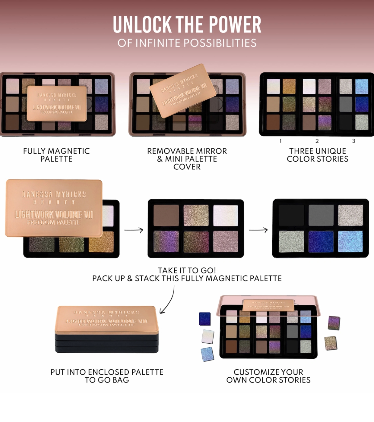 Célébrez 10 ans d'innovation, d'art et de créativité avec la Lightwork VII Palette de Danessa Myricks , une édition emblématique qui rend hommage au passé, au présent et au futur de la marque.