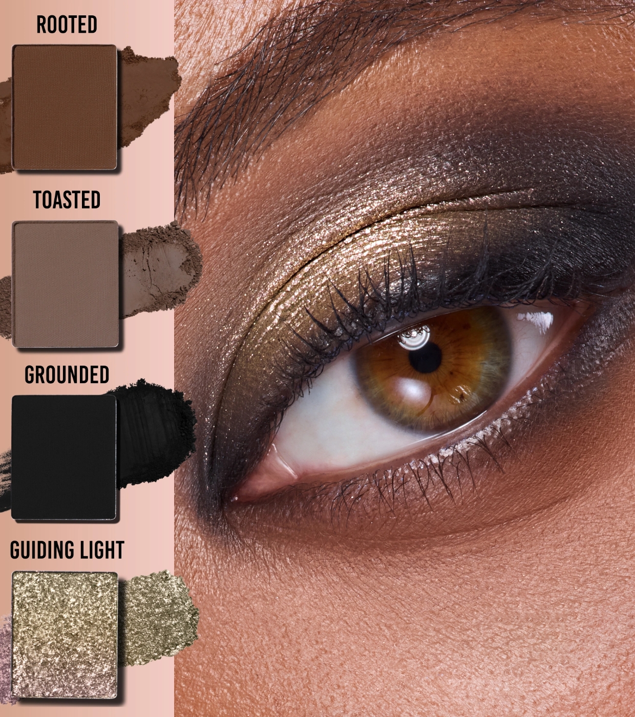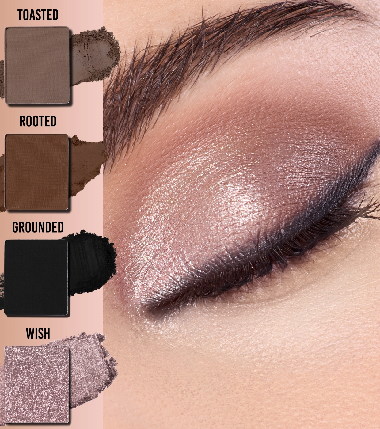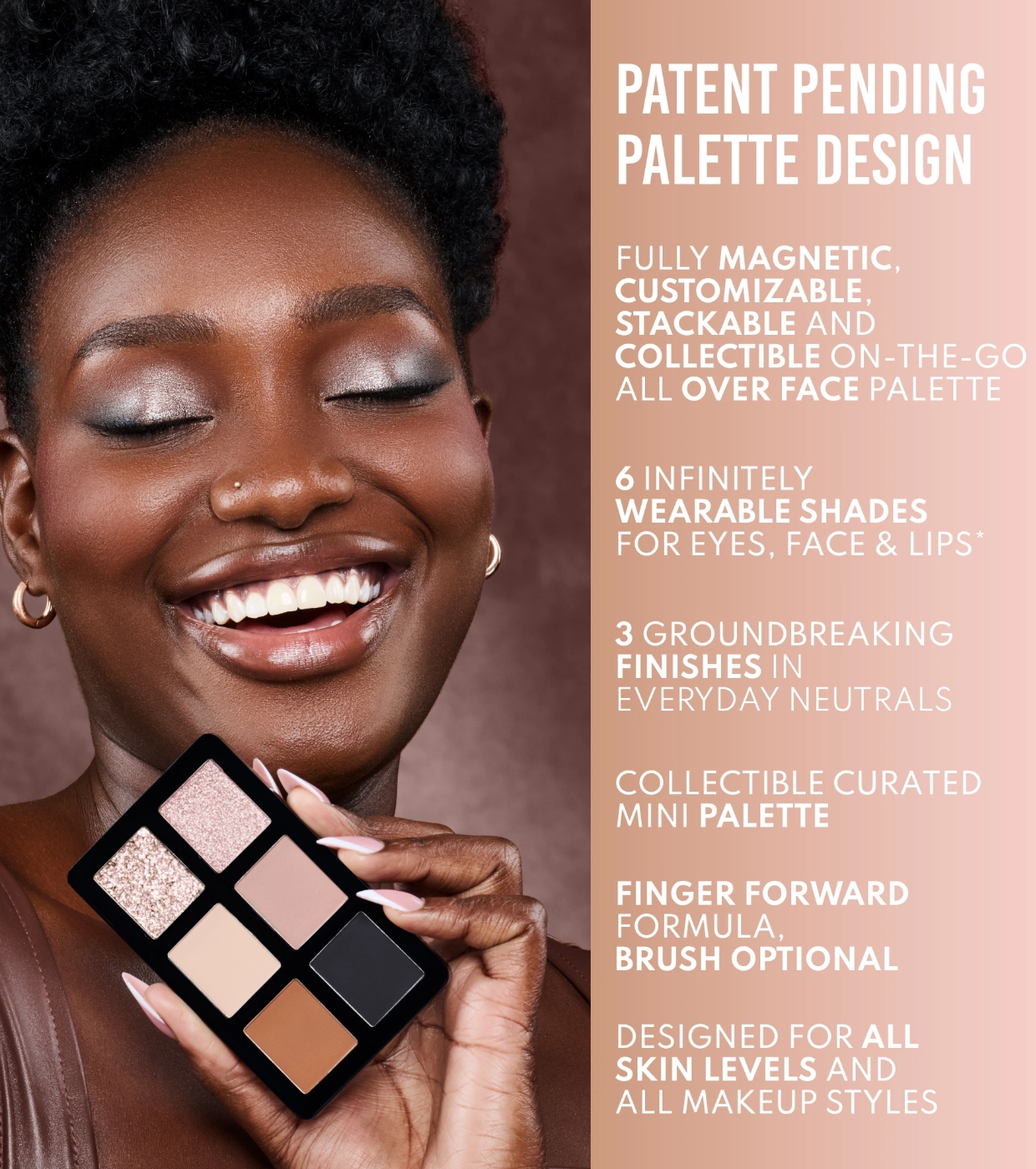 Cette palette réunit six teintes essentielles aux finis magiques : un top coat nacré ultra-réfléchissant et dynamique, un métallisé chromé à fort impact et quatre teintes de base mates à la pigmentation précise et facile à travailler.