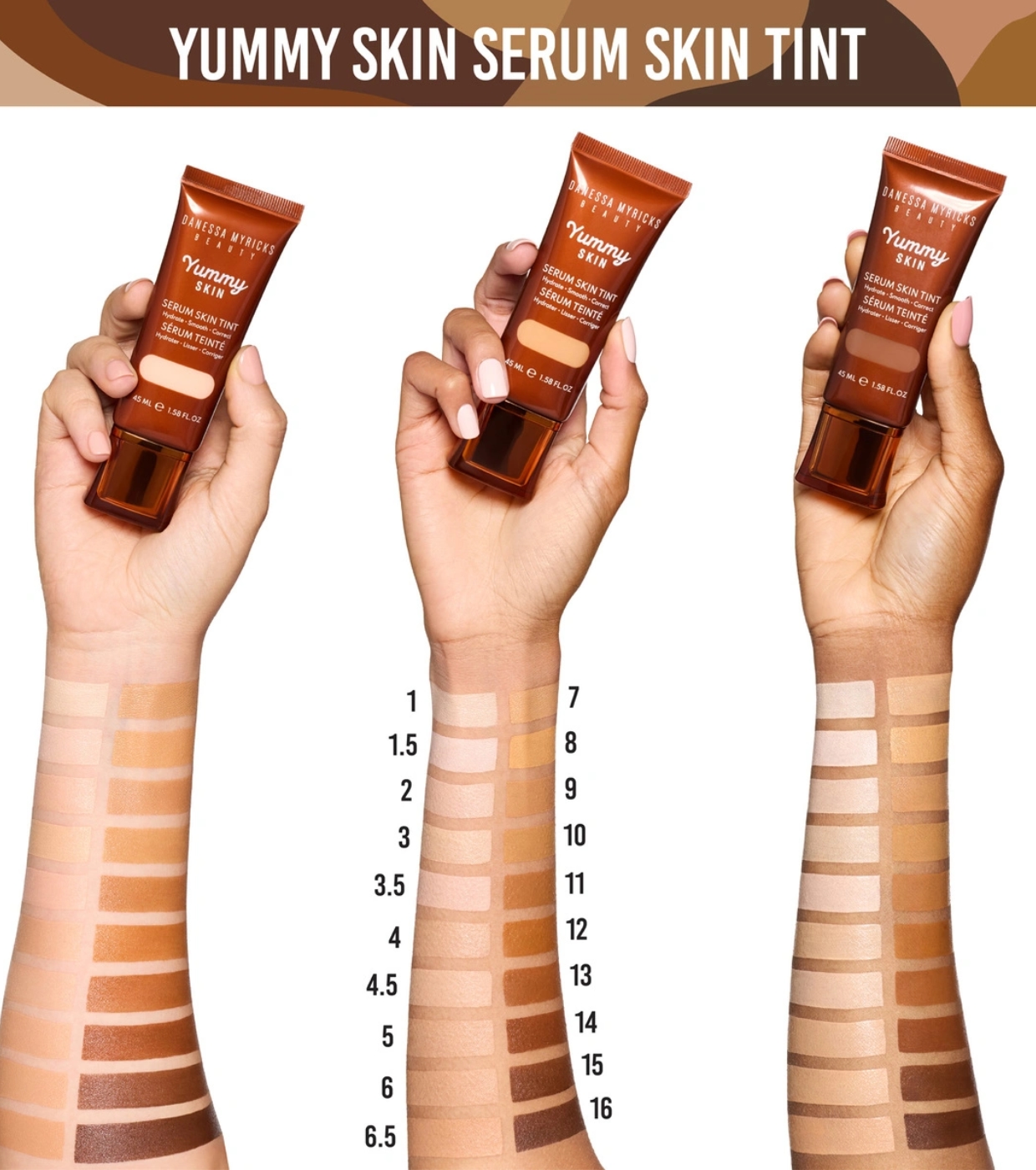 Découvrez la gamme de sérums colorés de Danessa Myricks , 16 teintes flexibles qui aident à corriger subtilement les rougeurs et à lisser la texture inégale.
