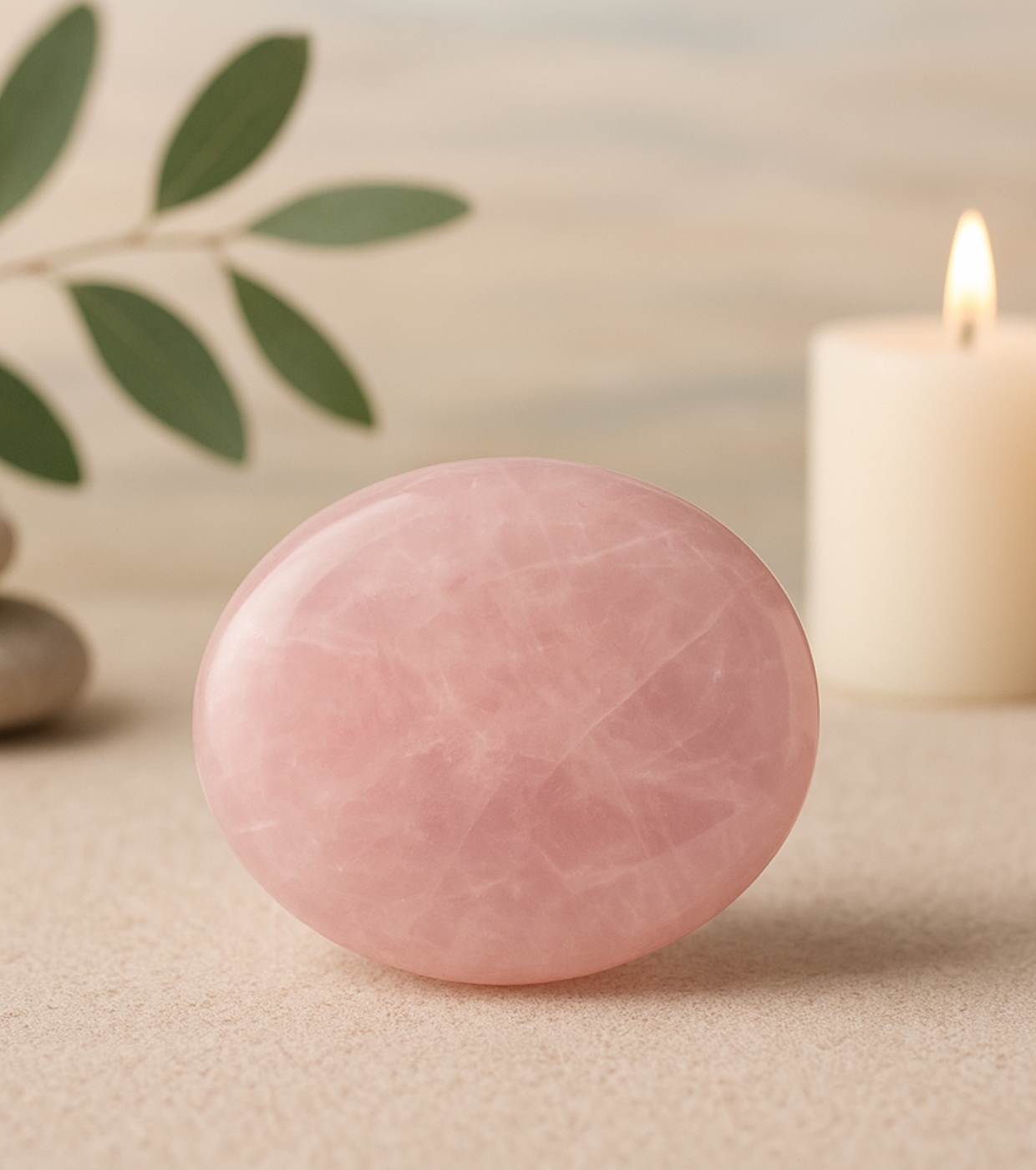 Le quartz rose est traditionnellement associé à l'amour de soi, à la paix intérieure et au calme émotionnel, faisant de cette pierre un symbole de bienveillance envers soi-même et de connexion personnelle.