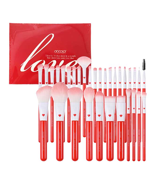 Les pinceaux de cet ensemble ont un beau design rouge passion et des poils synthétiques.