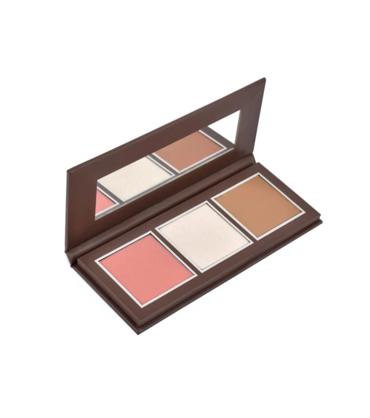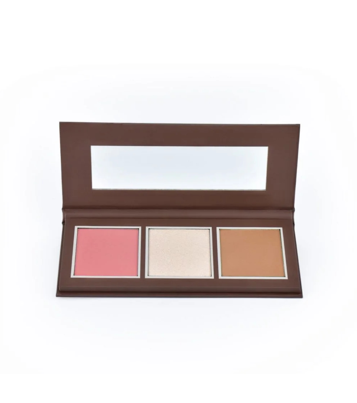 Découvrez la palette avec le trio d'essentiels pour le visage : Highlighter, blush et poudre bronzante. Compact, polyvalent, facile et avec une texture qui vous surprendra.