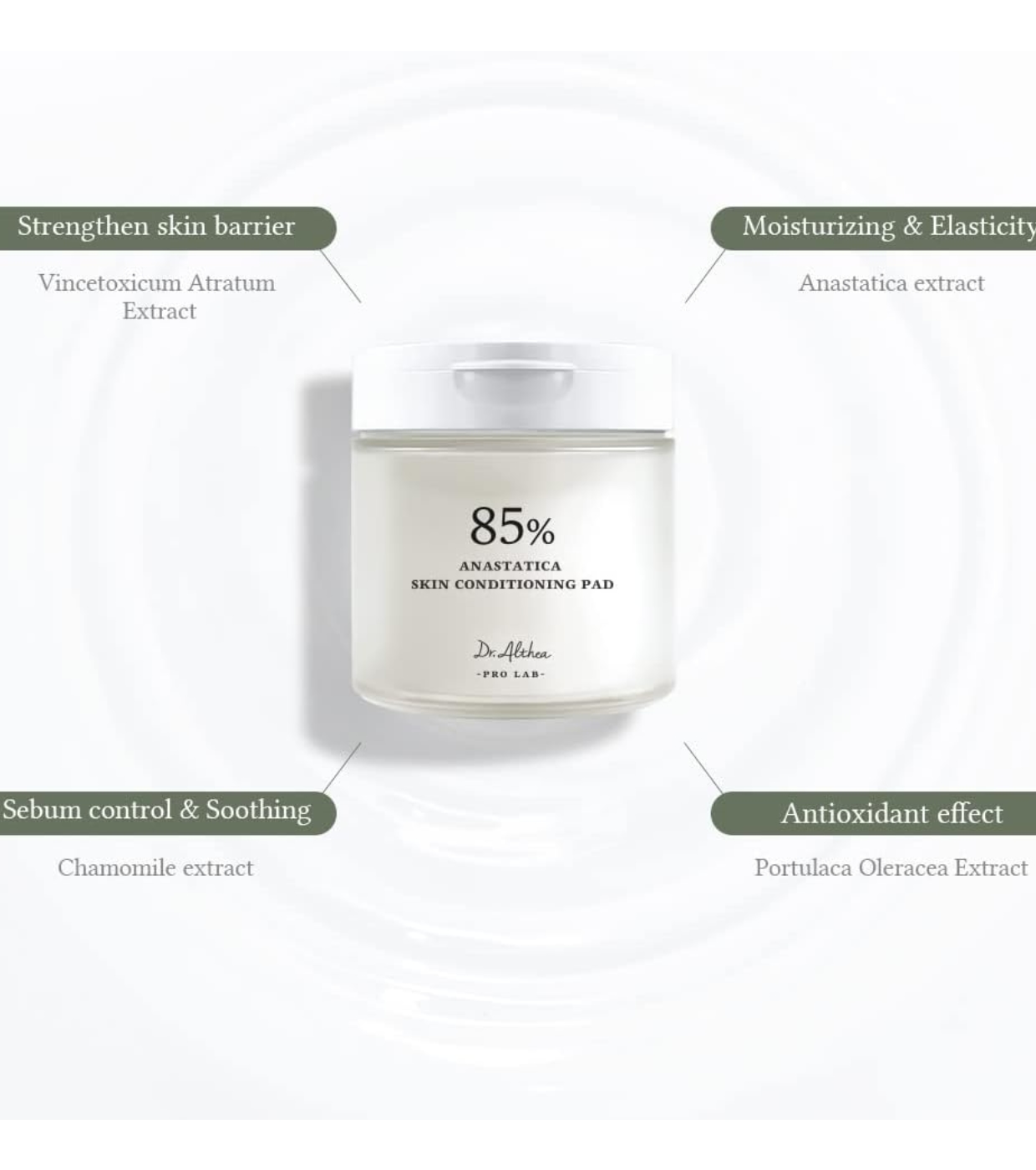 Dr. Althea Les tampons d'extrait d'Anastatica sont des tampons double face contenant 85 % d'extrait d'Anastatica au lieu d'eau purifiée.