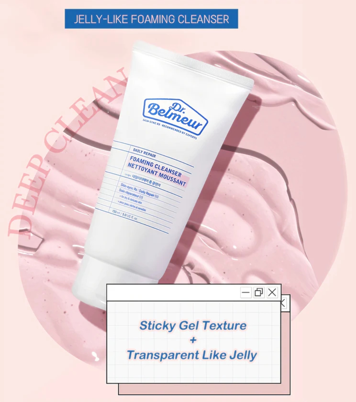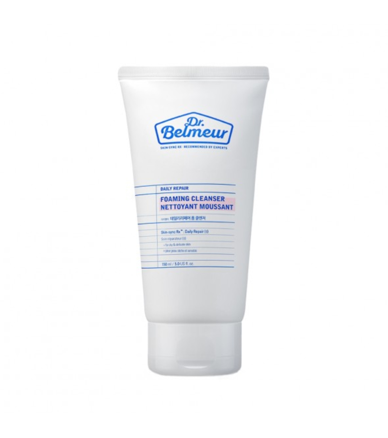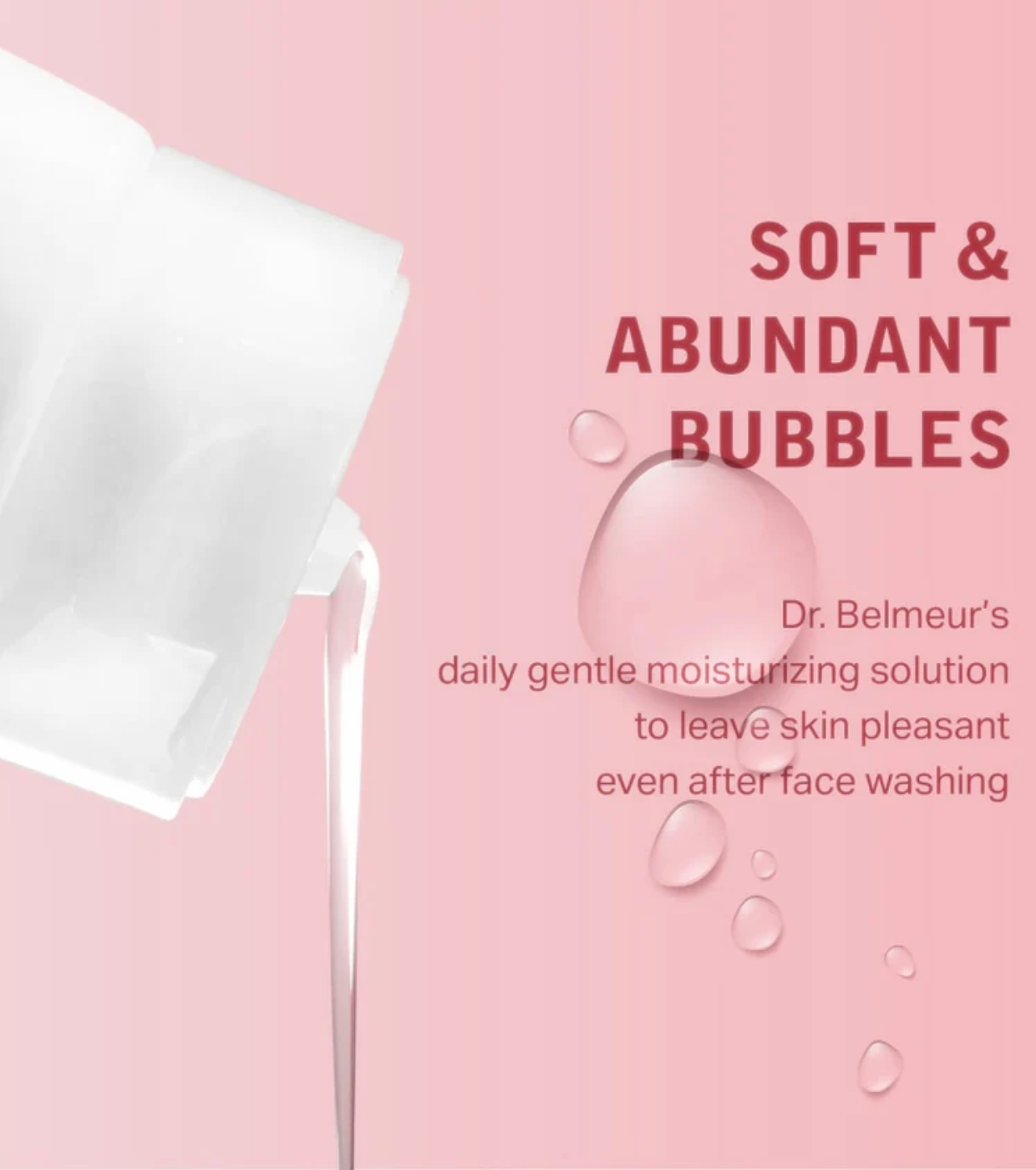 Le Daily Repair Foaming Cleanser du Dr. Belmeur est un gel nettoyant pour le visage au pH équilibré qui se transforme en une mousse onctueuse et douce au contact de l'eau.