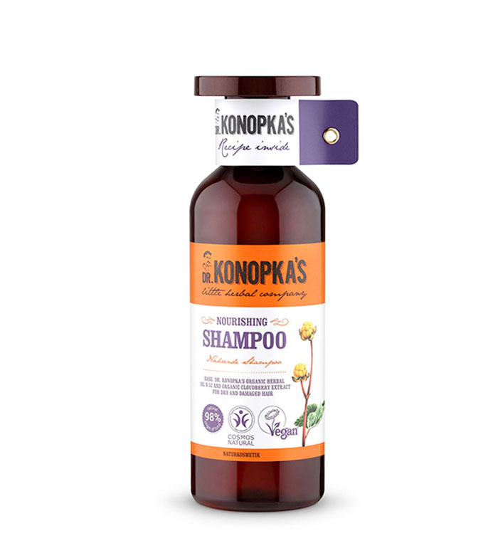 Le shampooing nourrissant naturel pour les cheveux contient BDIH COSMOS BDIH COSMOS Certified Organic Special Herbal Oil No. 52 et de l'extrait de chicouté.