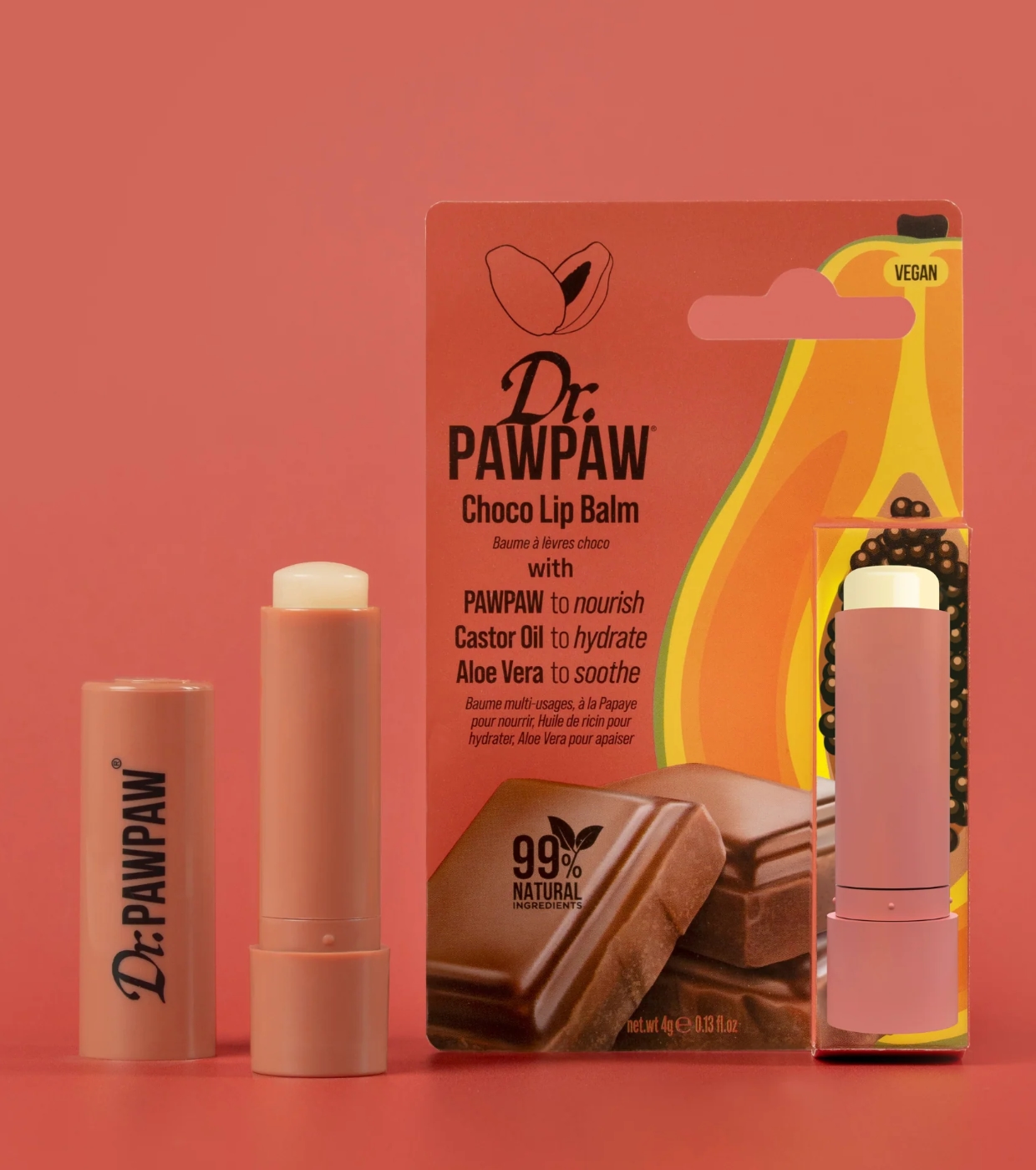 Profitez d'un soin des lèvres exquis avec le baume à lèvres Dr. PAWPAW Dr. PAWPAW , un baume miracle végétalien à 99 % naturel formulé pour hydrater en profondeur et laisser les lèvres douces, nourries et avec un délicieux parfum de chocolat.