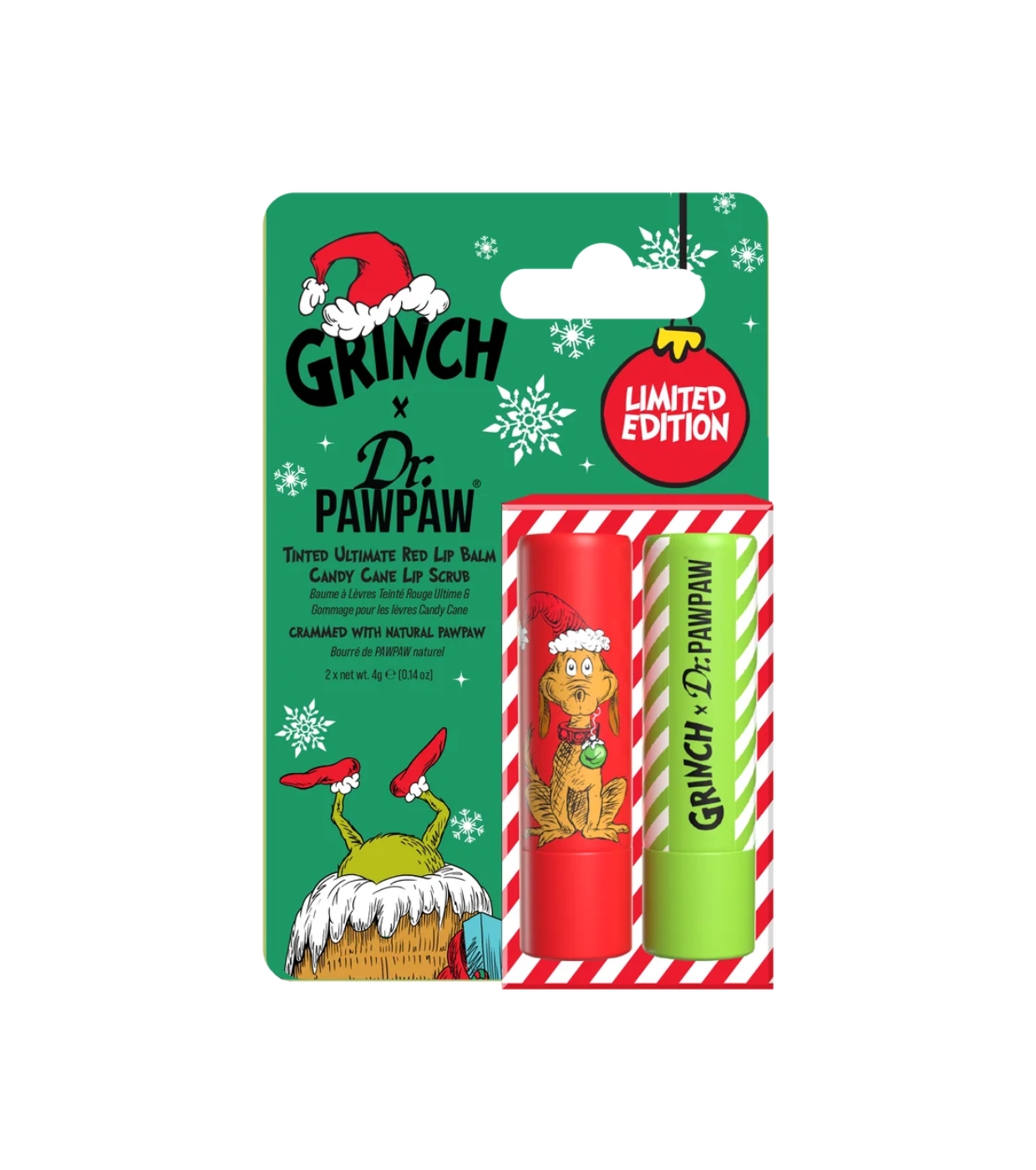 Whoville présente le duo le plus coquin et indispensable de la saison : le Grinch x Dr.PAWPAW Whoville Tinted Duo , un coffret festif qui combine exfoliation, nutrition et une touche de couleur pour des lèvres douces et hydratées, prêtes pour toutes les célébrations.