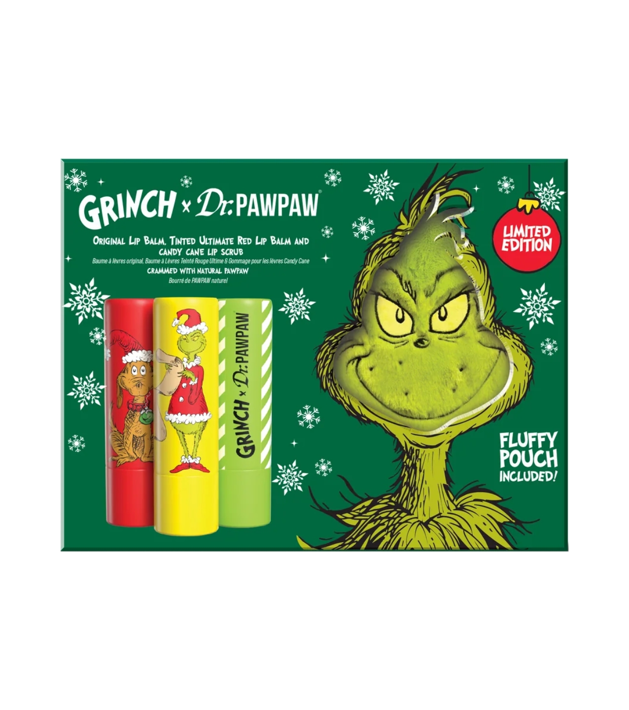 Tout droit venu de Whoville, voici le Grinch x Dr.PAWPAW Festive Care Trio , un ensemble essentiel pour garder vos lèvres douces, hydratées et confortables pendant toute la période des fêtes.