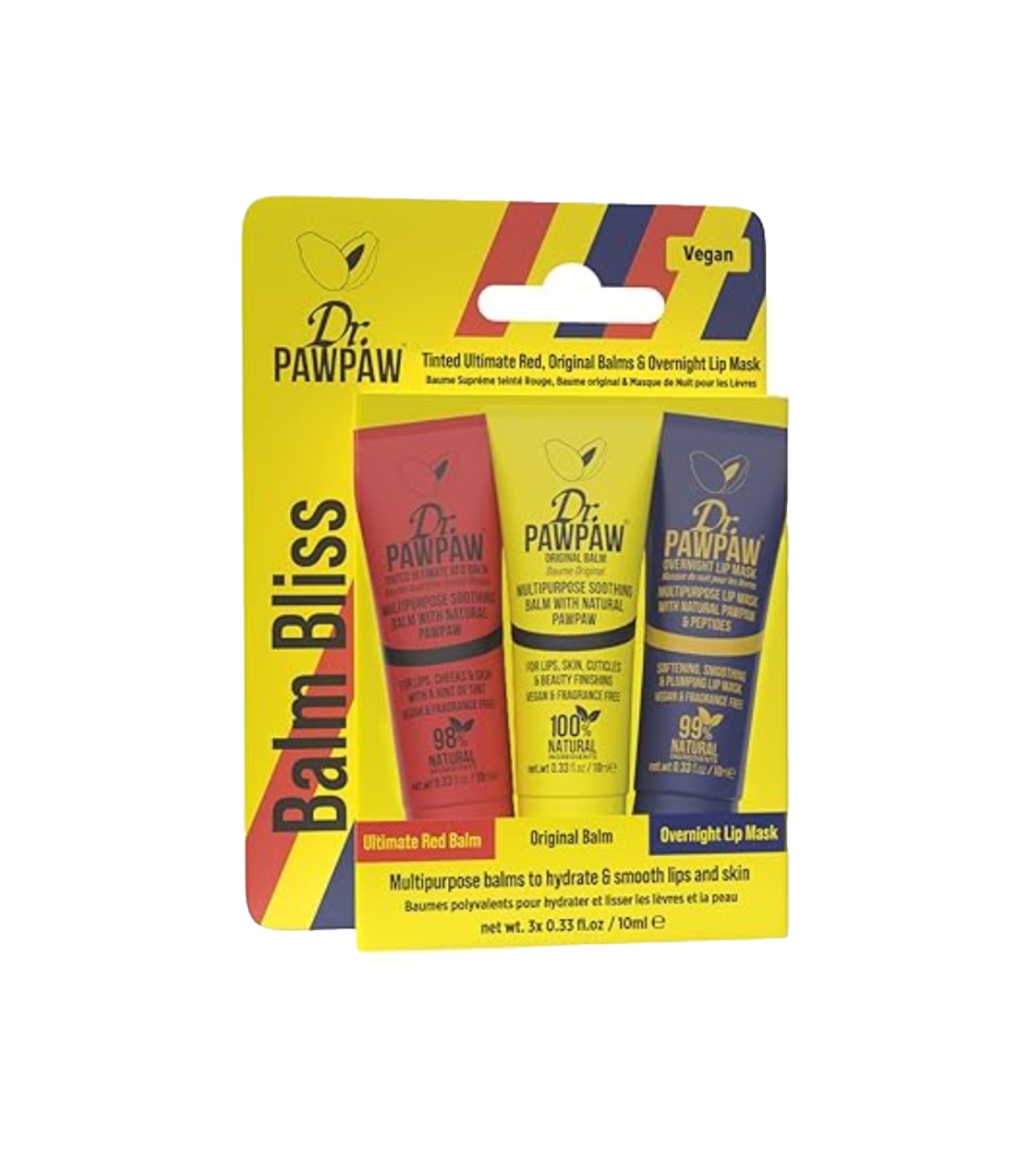 Le Balm Bliss Trio Dr.PAWPAW est le coffret parfait pour prendre soin et embellir vos lèvres et votre peau en toute occasion.