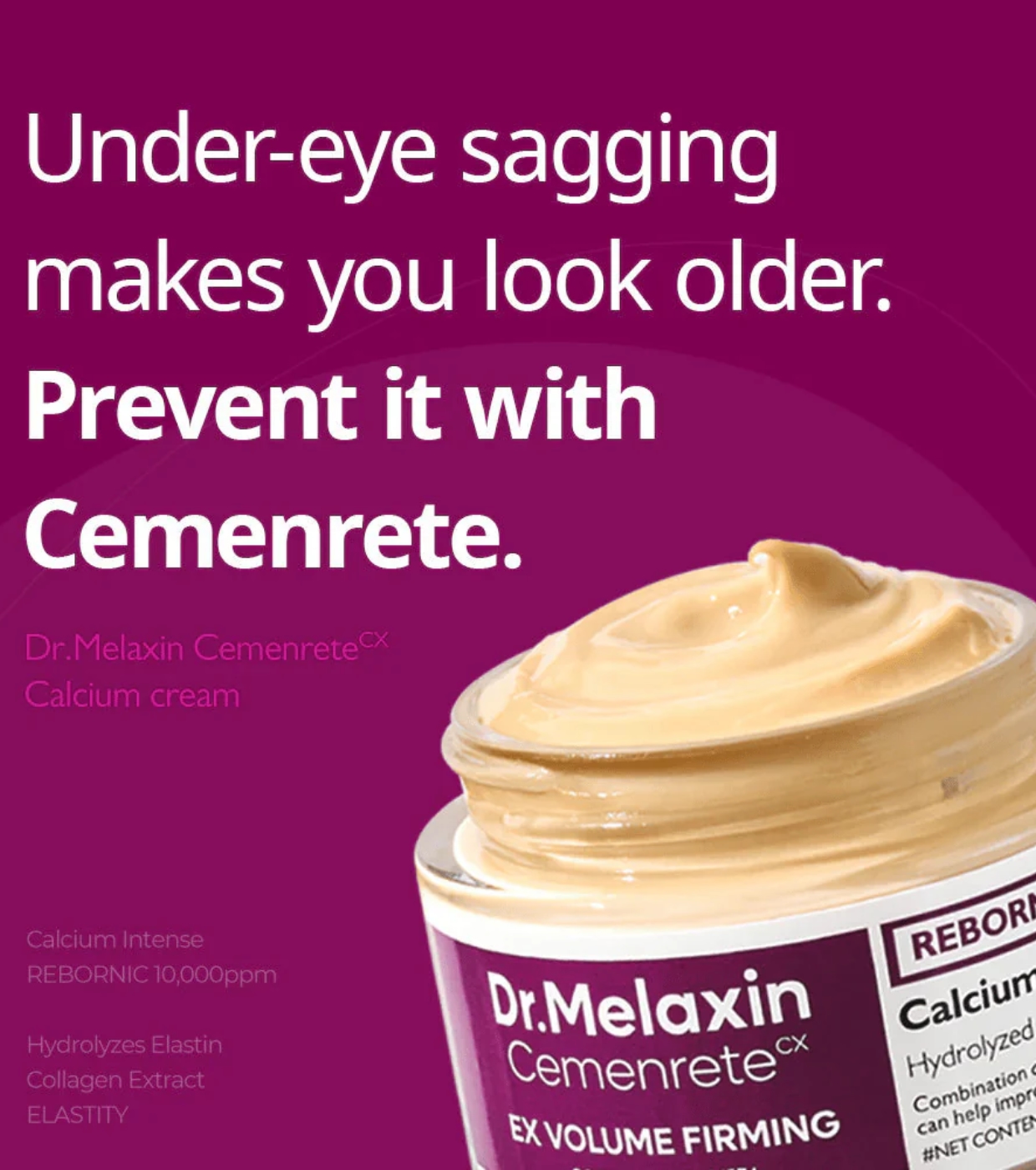 Obtenez une peau plus ferme, plus élastique et plus lumineuse avec la crème Cemenrete Calcium de Dr.Melaxin , une crème pour le visage avancée formulée pour améliorer la résistance de la peau et fournir un effet rajeunissant visible.