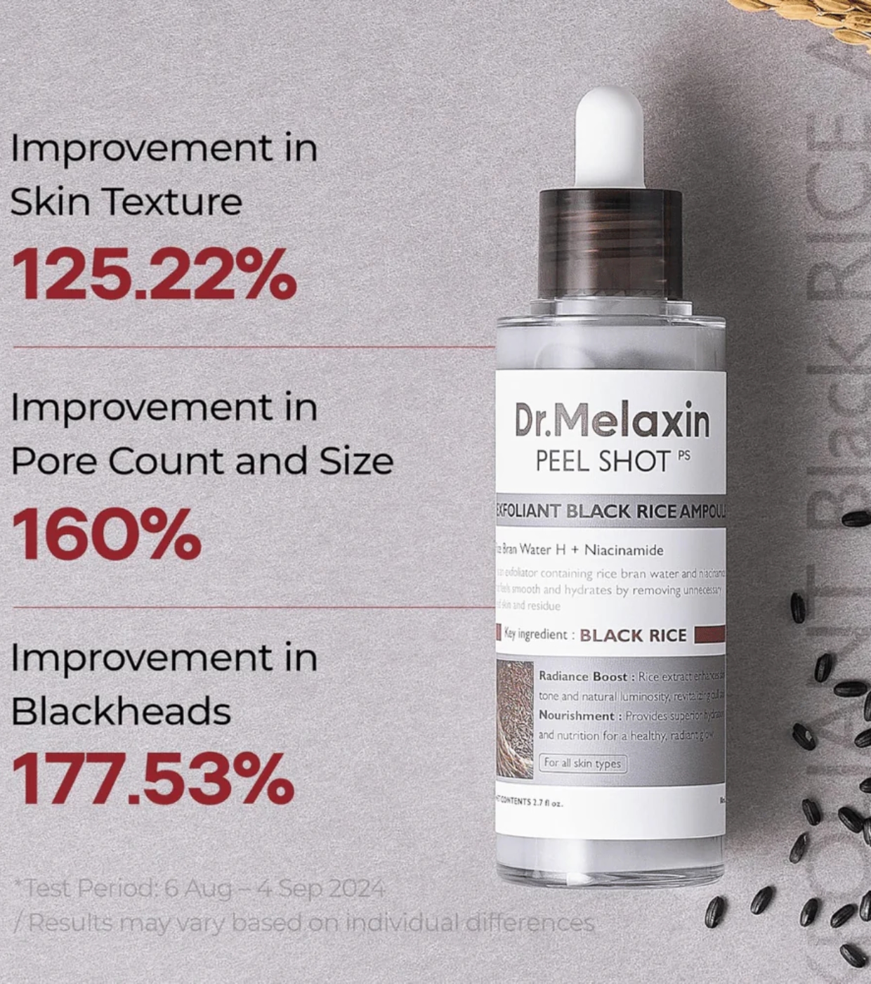 Cette ampoule exfoliante Peel Shot Black Rice de Dr.Melaxin est conçue pour offrir un traitement complet des pores, aidant à éliminer les points noirs, à réguler le sébum et à améliorer l'éclat de la peau sans compromettre l'hydratation.
