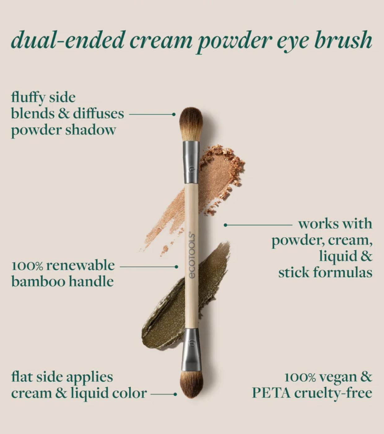 Le pinceau Cream & Powder Dual-Ended d'EcoTools est un outil 2 en 1 polyvalent conçu pour appliquer et mélanger les fards à paupières avec précision et facilité.