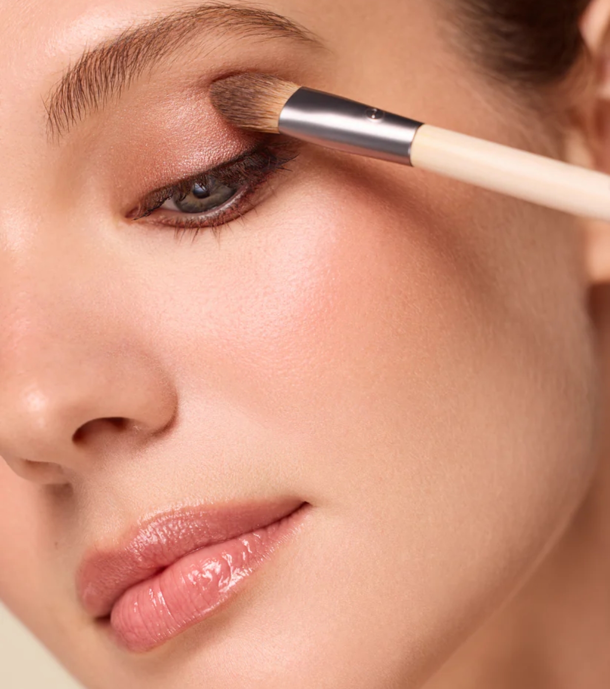 Elle possède une face plate, idéale pour appliquer des fards à paupières crème ou liquides sur la paupière avec un fini uniforme, et une face plus souple et duveteuse qui permet d'estomper et d'adoucir les fards à paupières poudre ou crème dans le creux de la paupière ou sur les bords, pour des transitions naturelles.