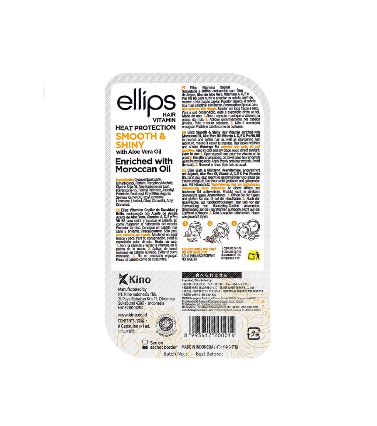Ampoules vitaminées de Ellips qui apportent douceur et brillance à vos cheveux.