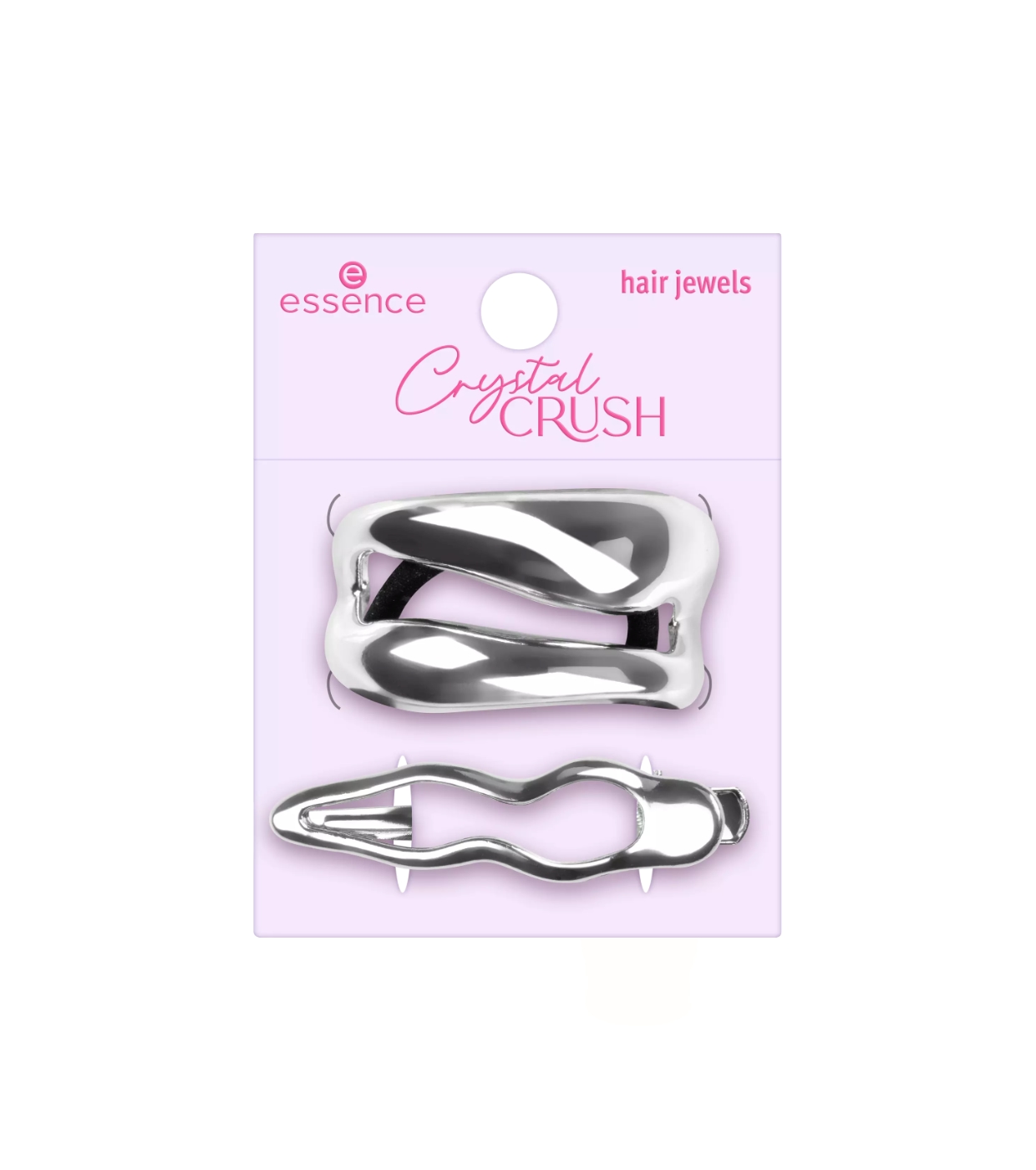Le duo chouchou et pince à cheveux CRYSTAL CRUSH de essence est l'accessoire parfait pour sublimer n'importe quelle coiffure avec une touche métallique moderne et attrayante.