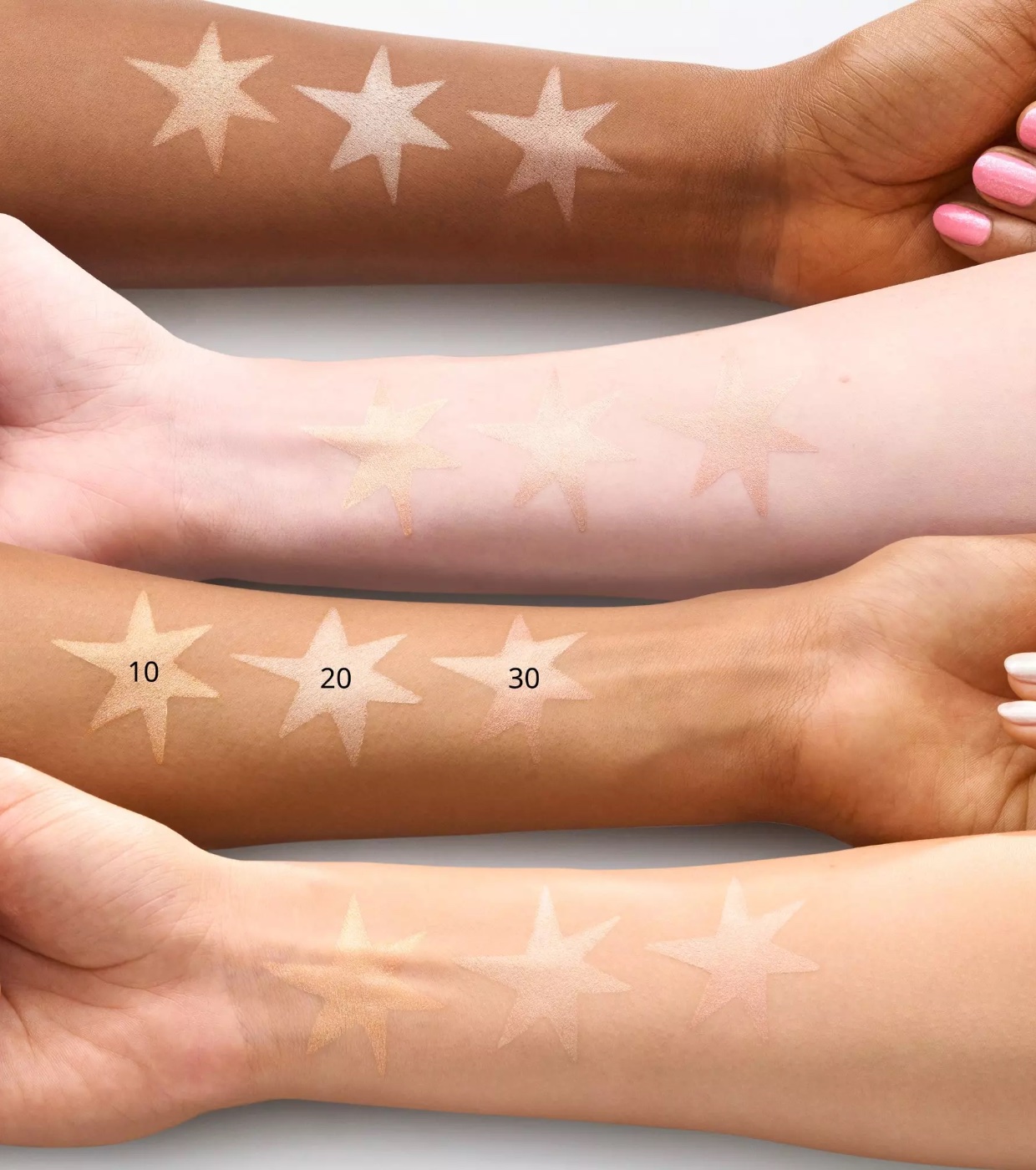 Sa formule légère se mélange facilement, créant un effet éclat modulable, d'un éclat subtil à une luminosité plus intense.