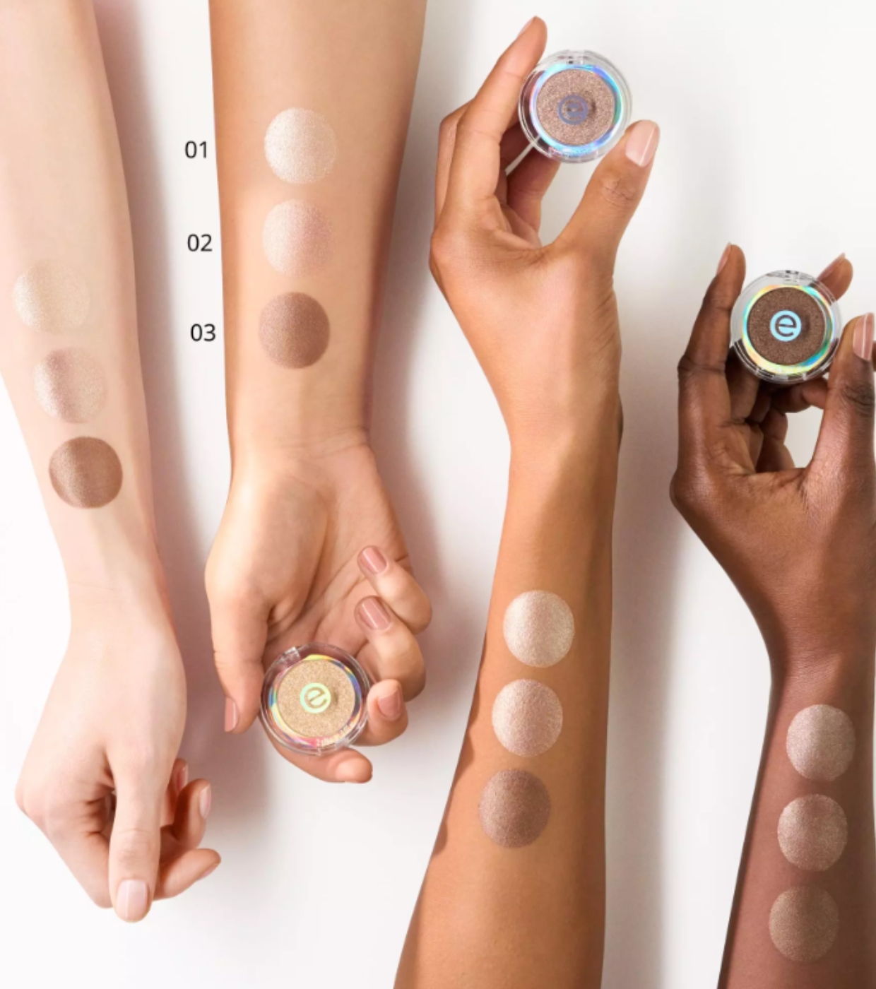 Encadrez votre regard avec l' ombre à paupières monochrome nacrée de essence, une teinte lumineuse qui reflète la lumière de façon spectaculaire et apporte une touche instantanée de luminosité.