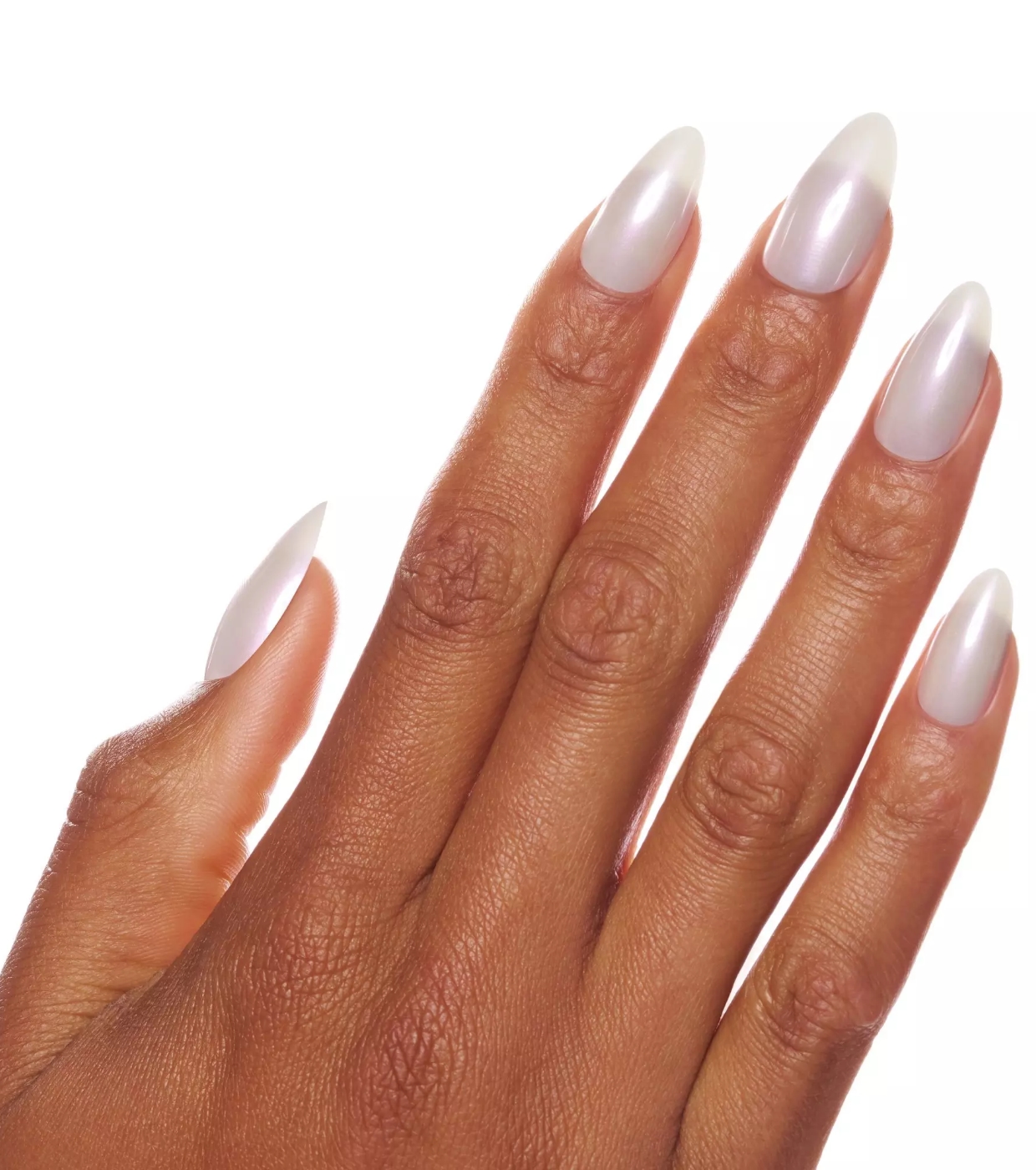 Cet ensemble comprend 24 ongles à presser de haute qualité en 12 tailles différentes, conçus en forme d'amande avec un subtil effet de vernis blanc.