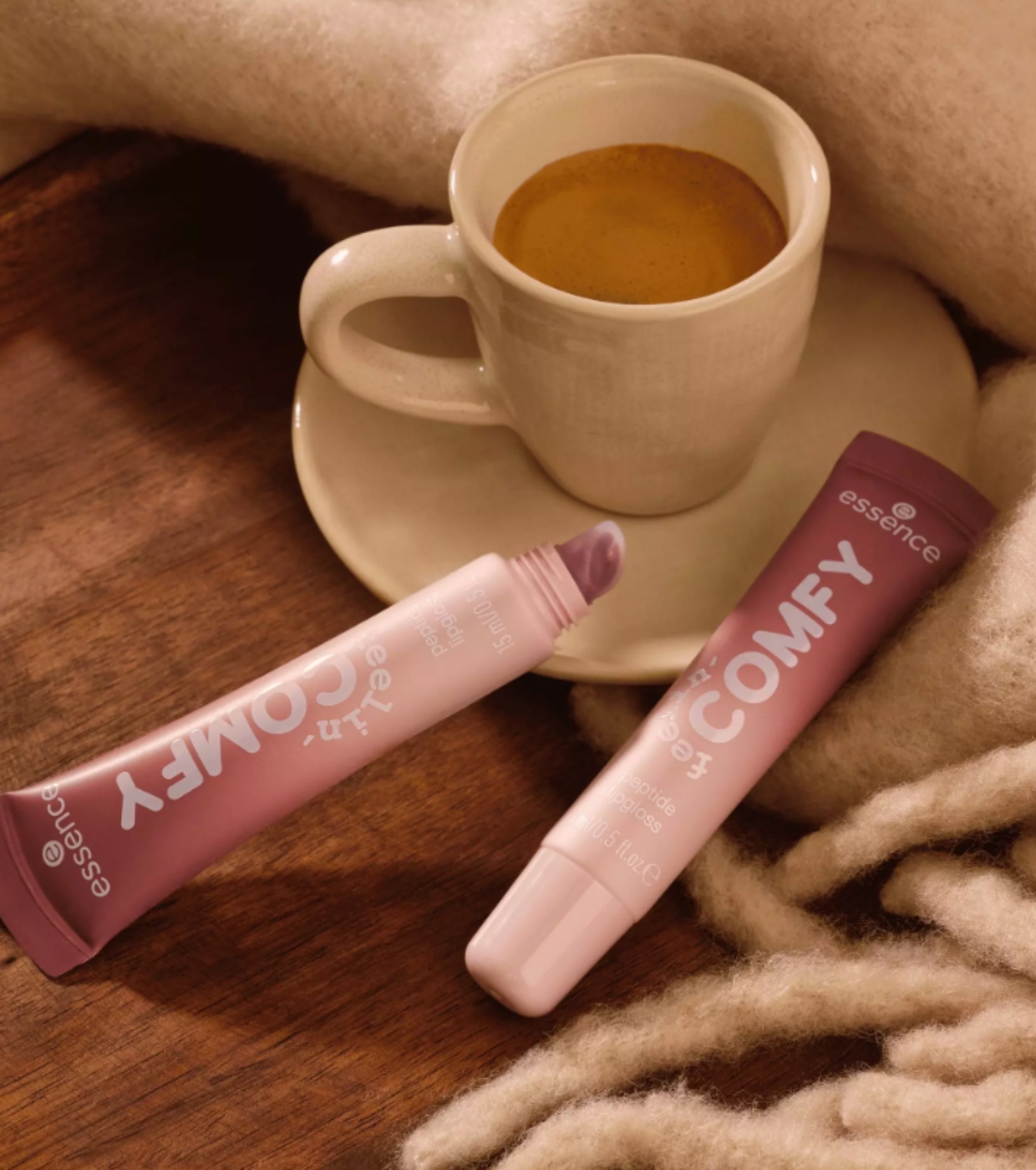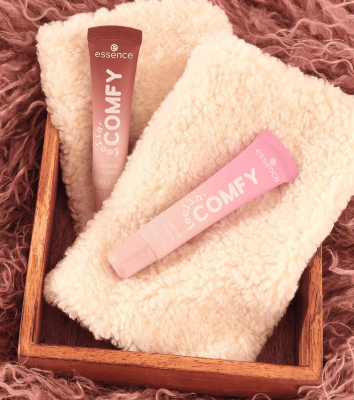 Le gloss Feelin’ Comfy Peptide Lipgloss d'essence donne aux lèvres une teinte rose clair lumineuse avec un fini naturel et flatteur.