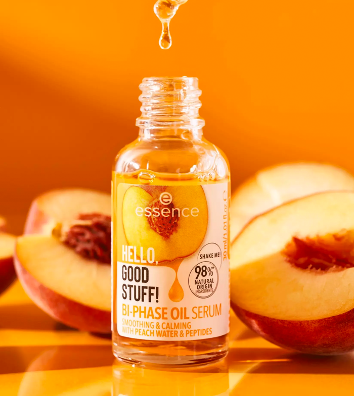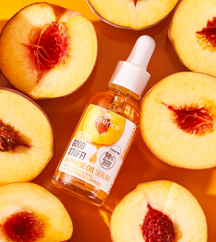 Ce sérum pour le visage de la gamme Essence HELLO GOOD STUFF! contient un arôme de pêche frais.