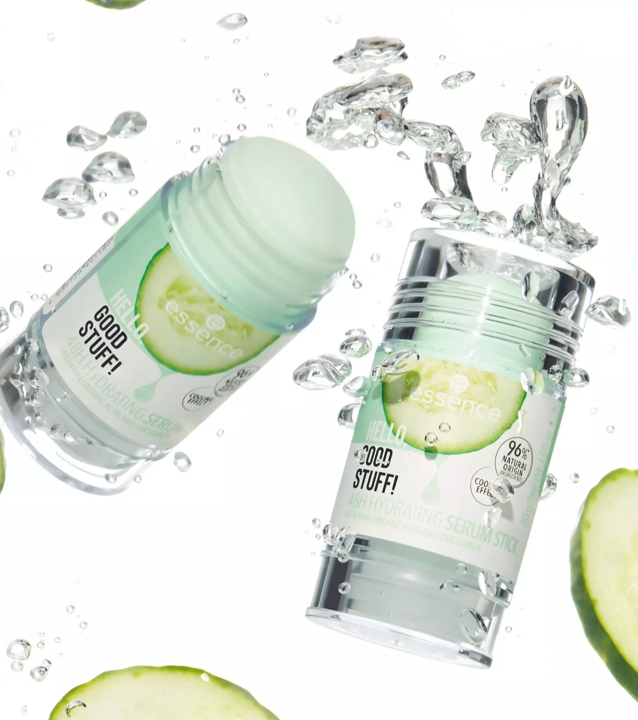 Le stick est présenté dans un récipient translucide et est enrichi en acide hyaluronique et en concombre, qui hydrate votre visage jusqu'à 48 heures.