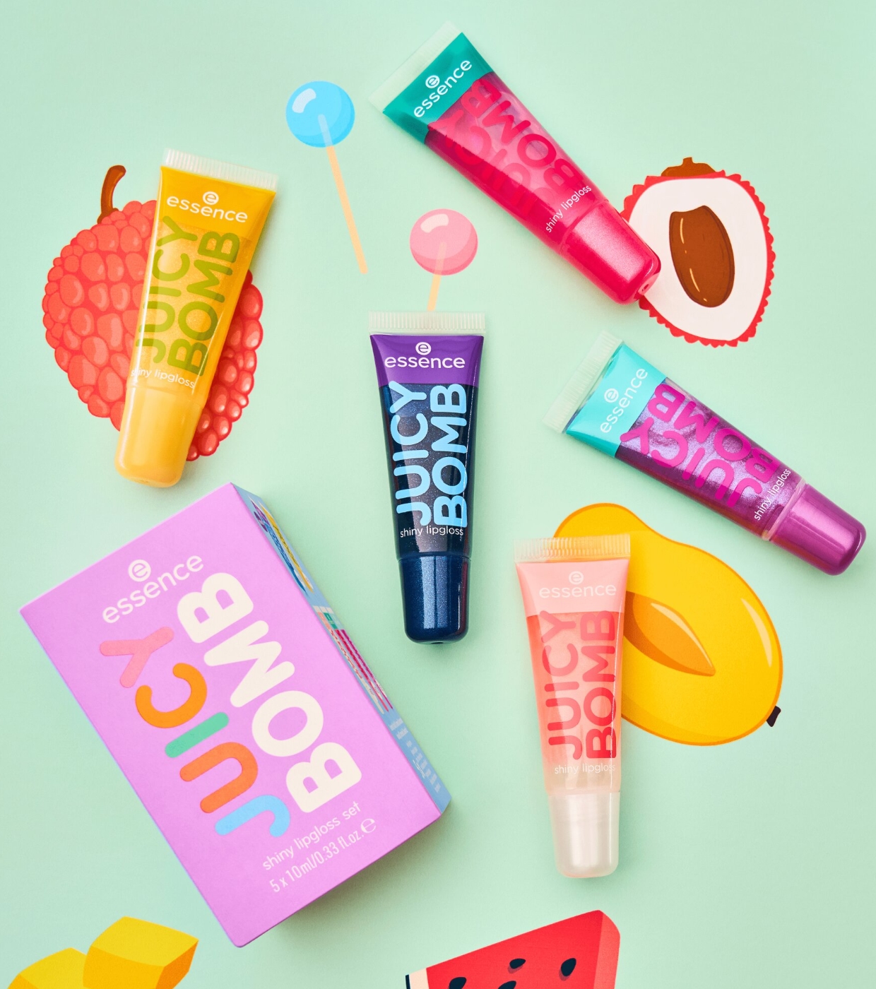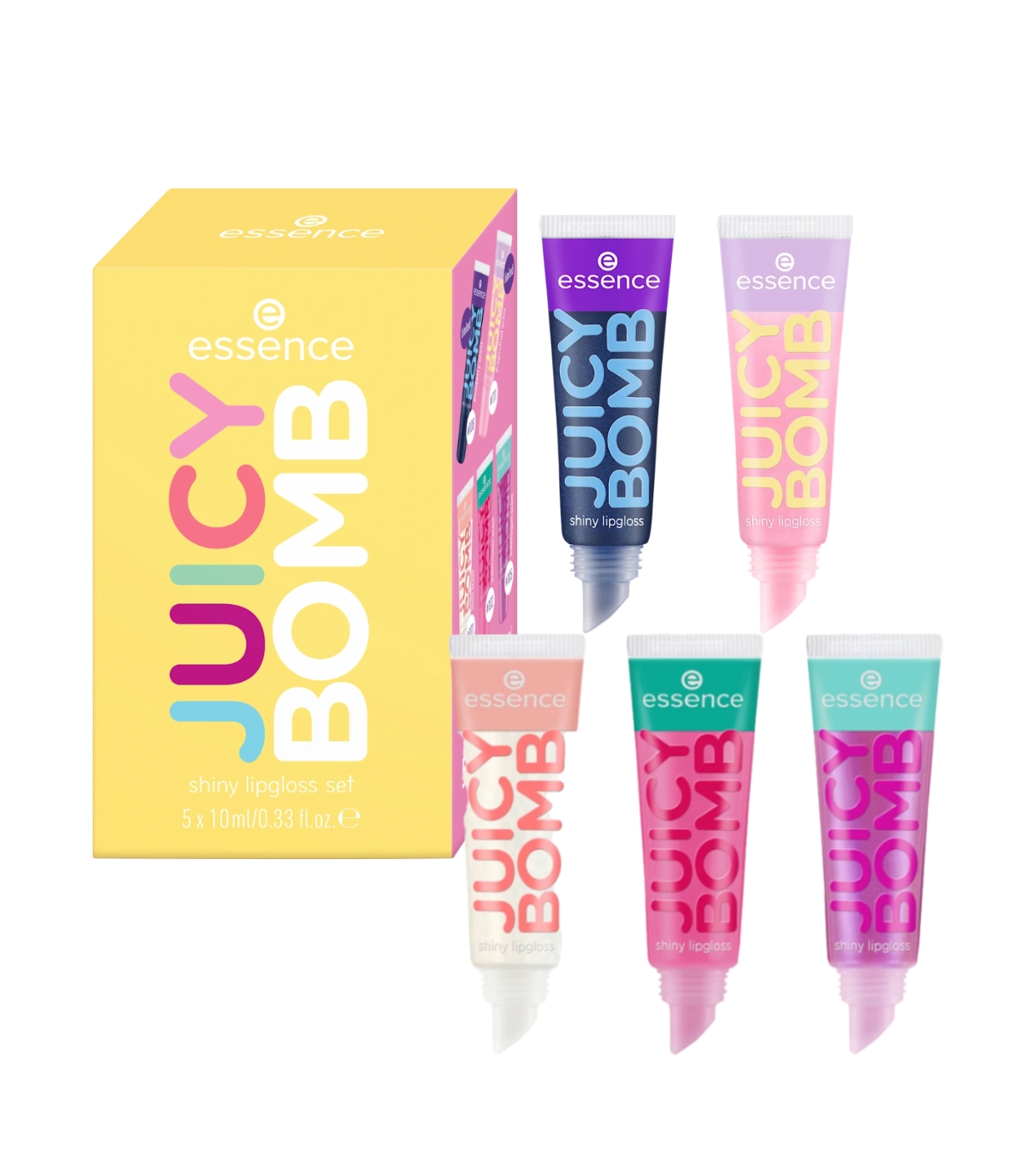 Offrez-vous des lèvres pulpeuses, brillantes et parfumées avec cet irrésistible coffret de gloss essence , comprenant plusieurs teintes de l'emblématique collection Juicy Bomb.