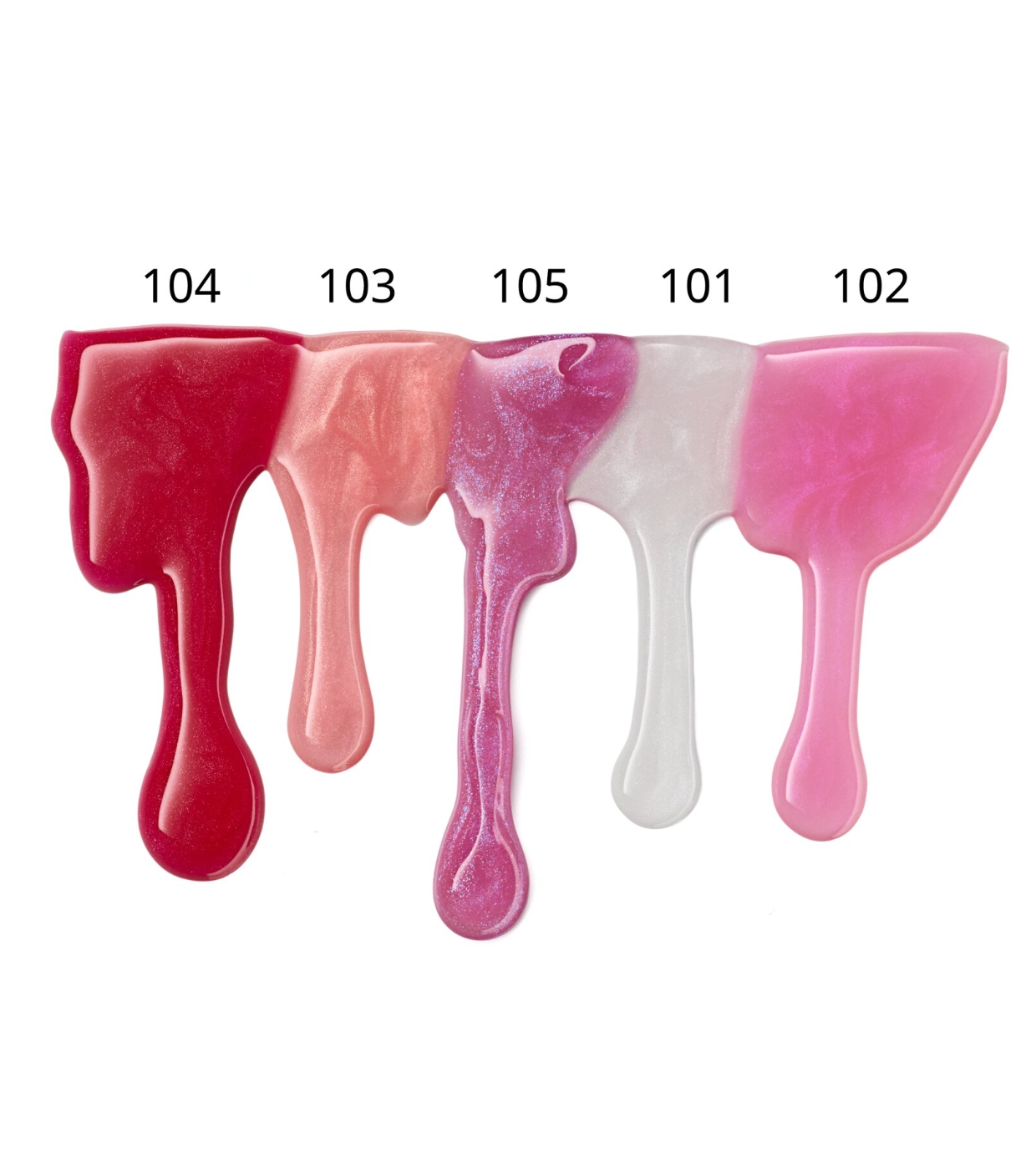 Contient 5 gloss à lèvres de 10 ml chacun.