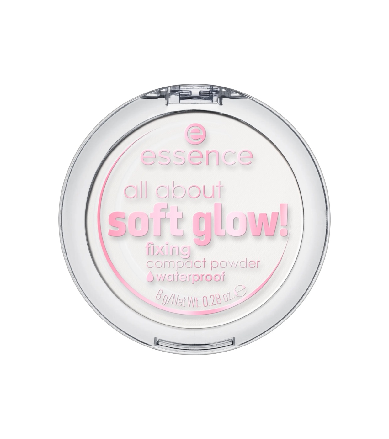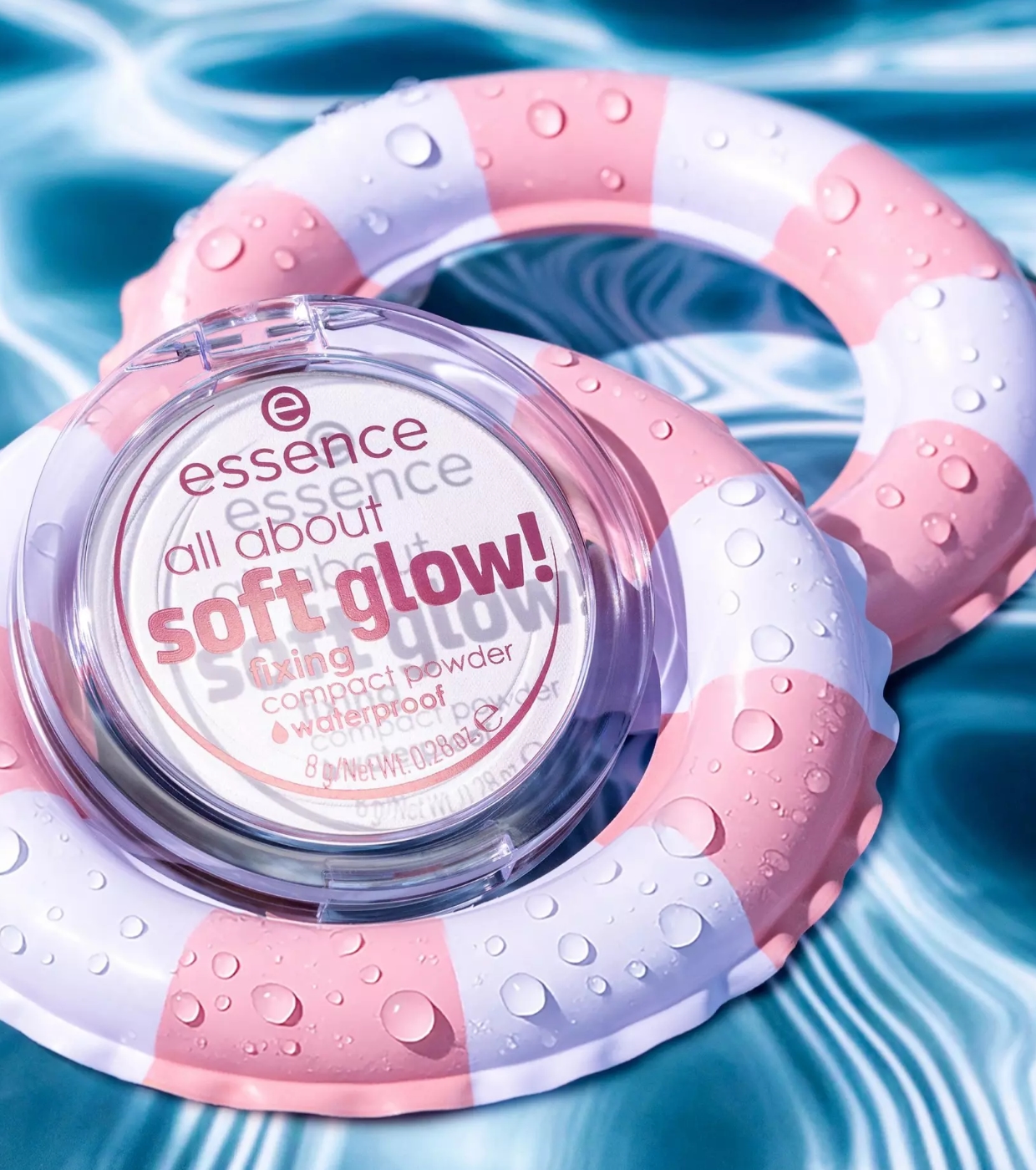 Obtenez un fini parfait et lumineux avec la poudre compacte fixatrice imperméable Essence All About Soft Glow!.