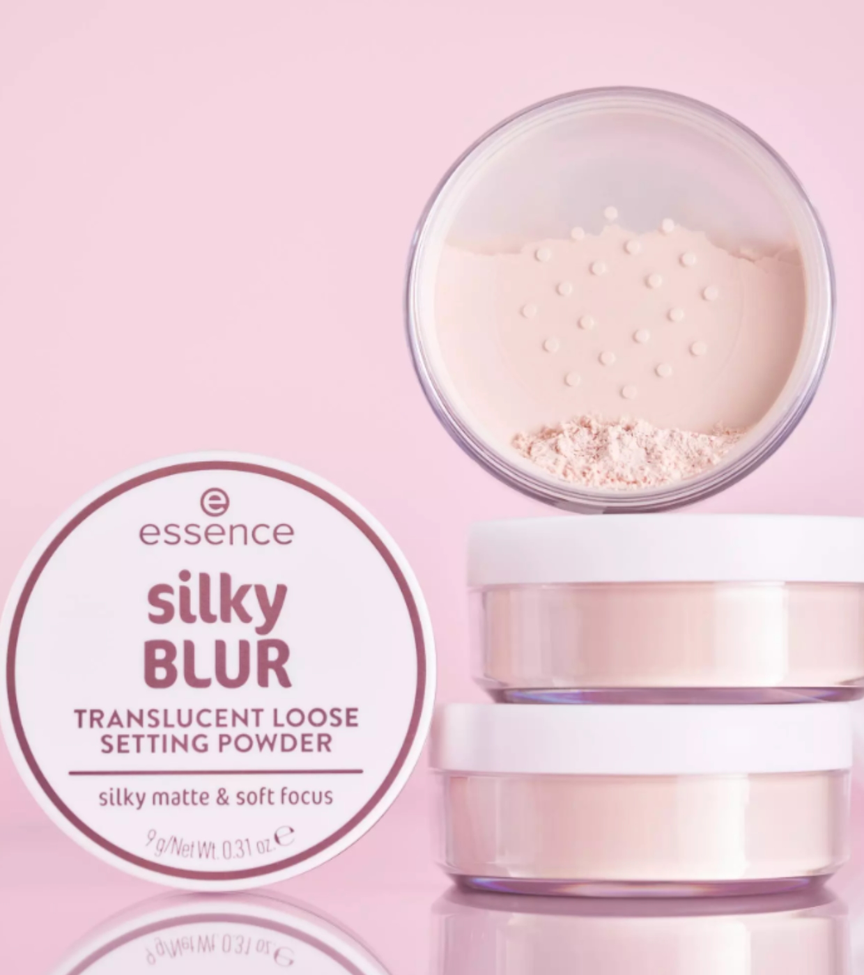 Sublimez votre teint avec les poudres, une poudre fixante silky BLUR Translucent de essence à la texture vaporeuse qui fixe le maquillage avec un fini doux et flouté.