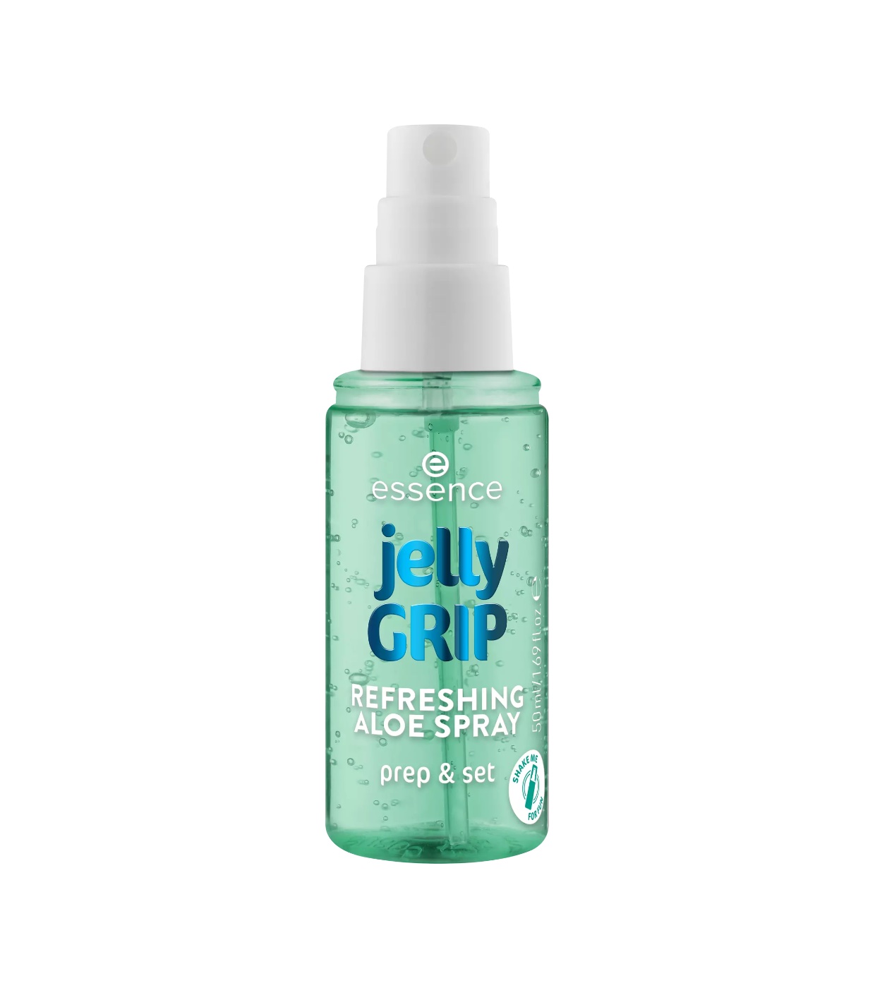 Jelly Grip Refreshing Aloe Spray est le spray 3 en 1 de essence qui rafraîchit, prépare et hydrate la peau tout en fixant le maquillage en une seule étape.