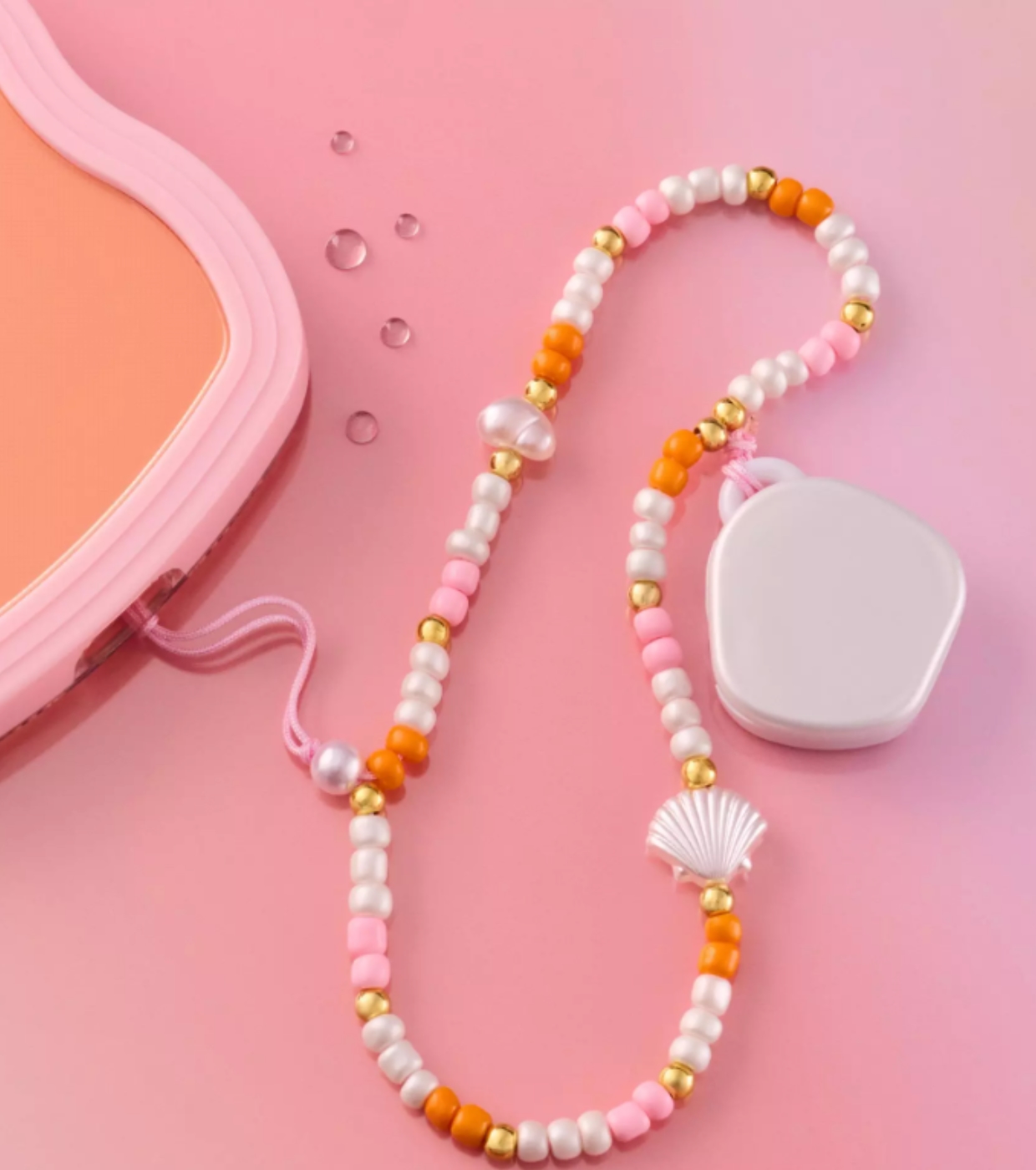 Son design, avec ses perles aux couleurs pastel, ses détails dorés et ses petits charms marins, crée un look amusant et estival.