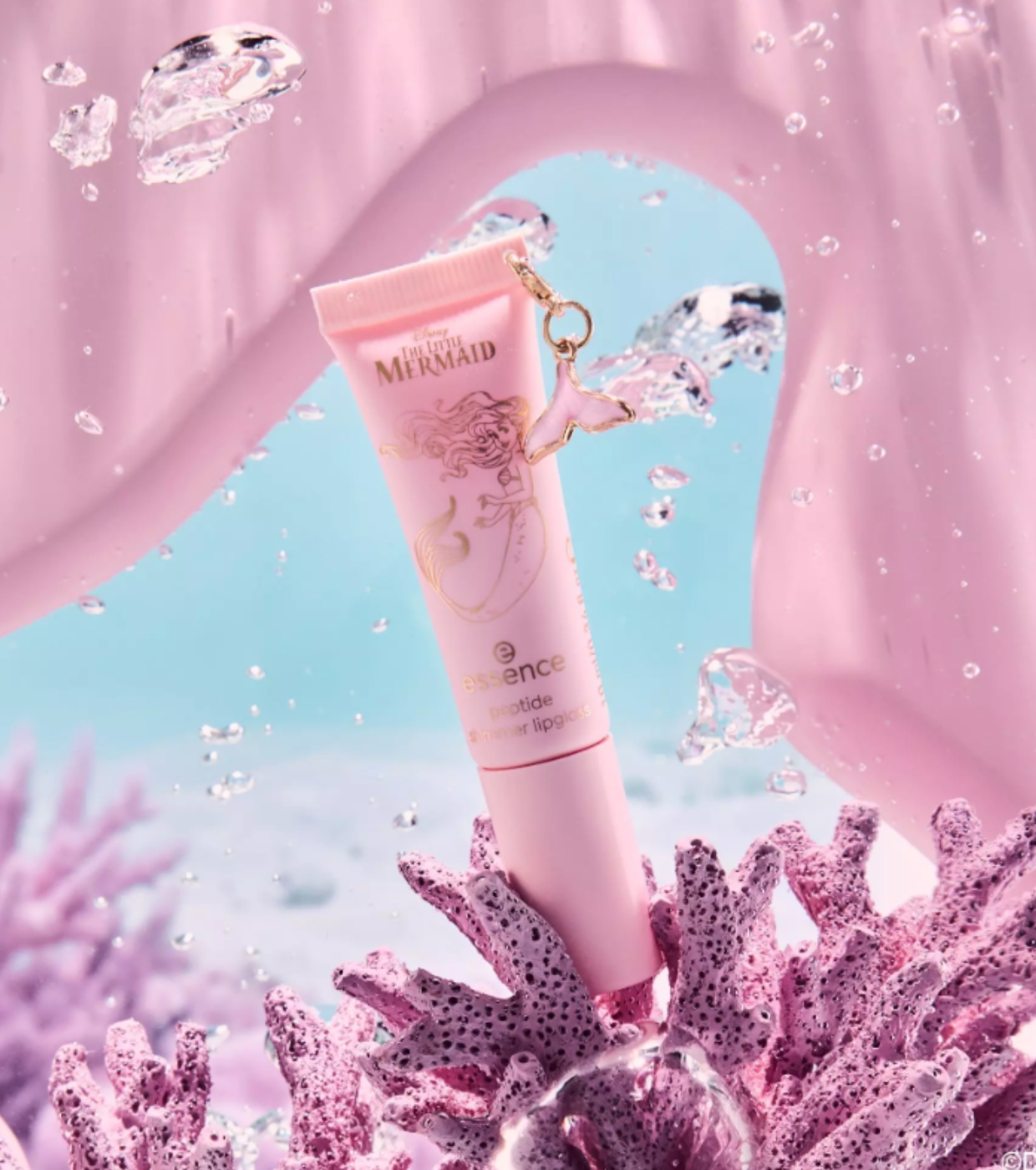 Obtenez des lèvres brillantes et pulpeuses avec le gloss à lèvres peptidique de la collection The Little Mermaid par essence x Disney .