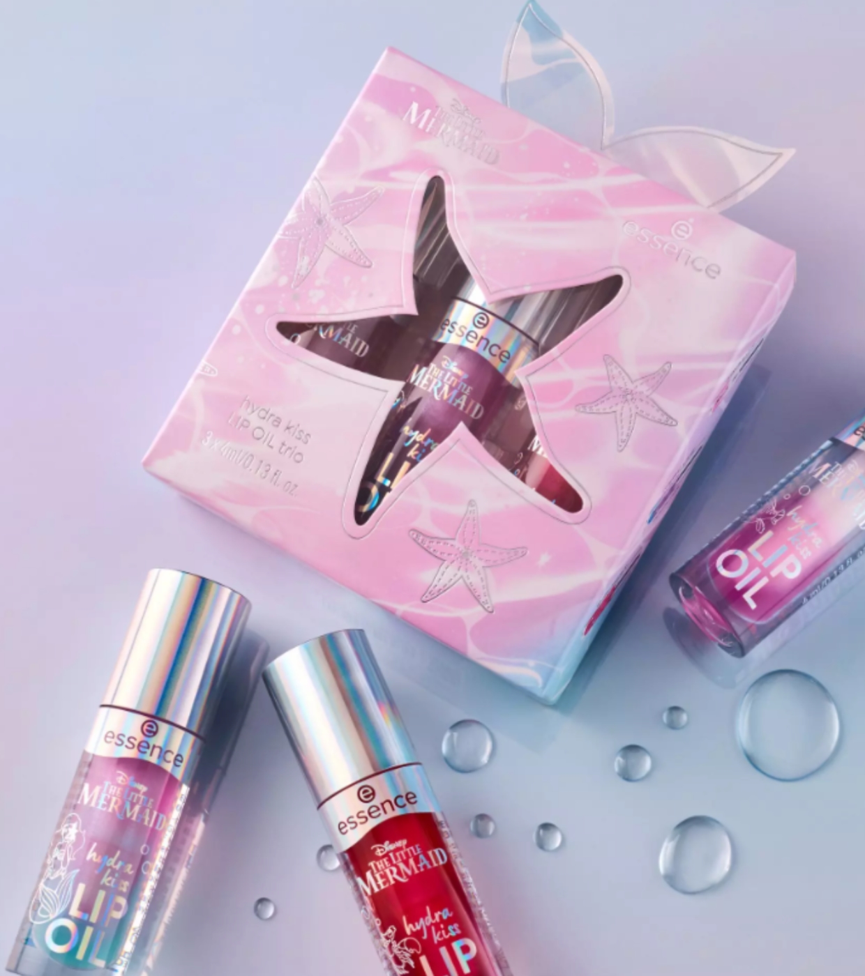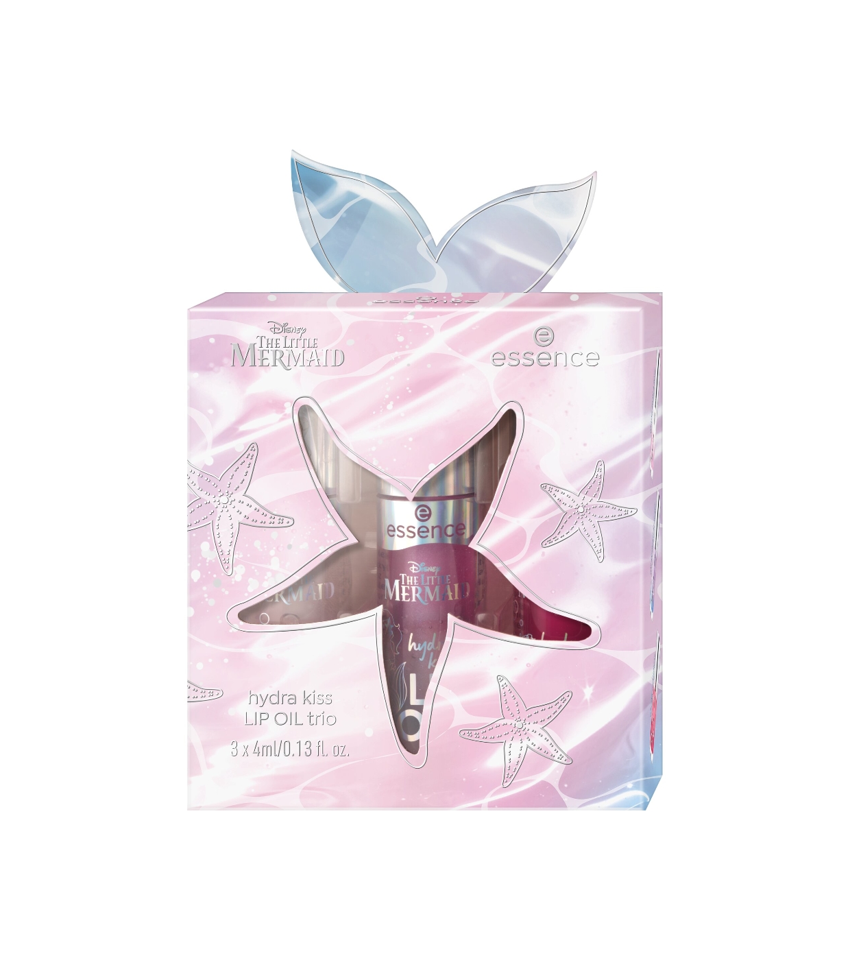 Profitez de lèvres douces et brillantes avec le trio d'huiles à lèvres Hydra Kiss de essence , inspiré par l'univers enchanteur de The Little Mermaid .