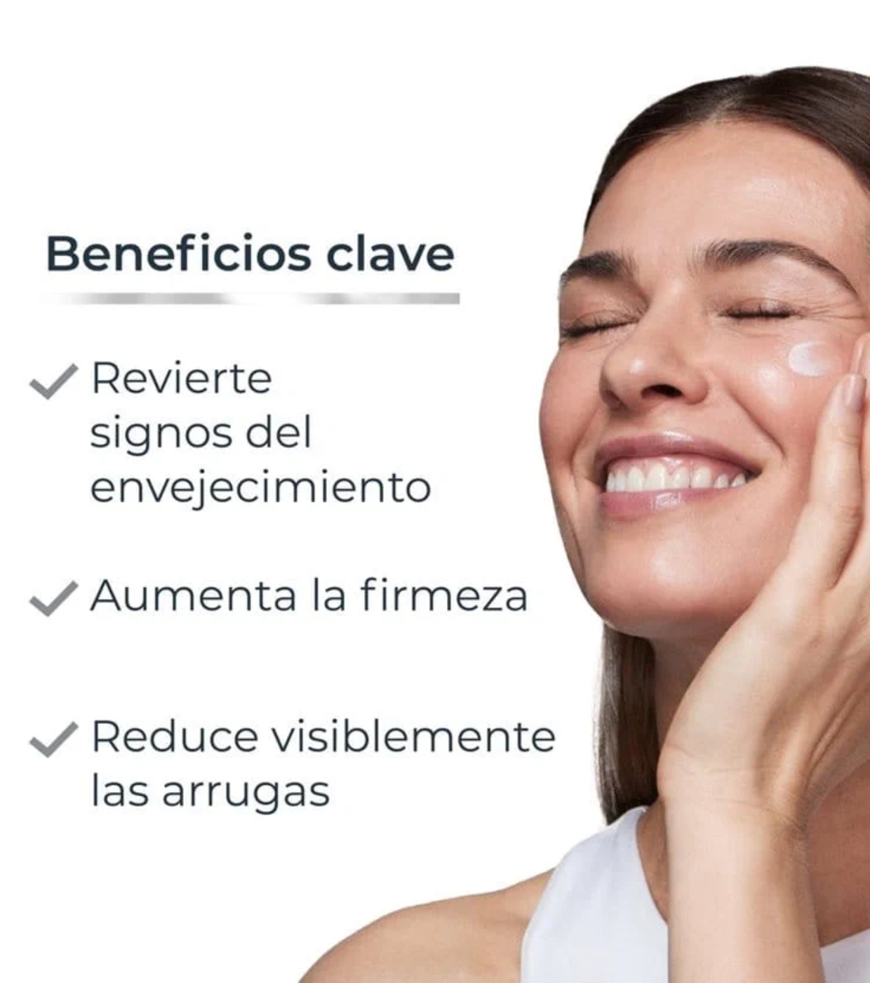 - Inverse visiblement les signes du vieillissement cutané, apportant des bénéfices tels que : fermeté, effet lifting, réduction des rides et ridules, amélioration des contours, hydratation, luminosité, rajeunissement, uniformité et douceur.